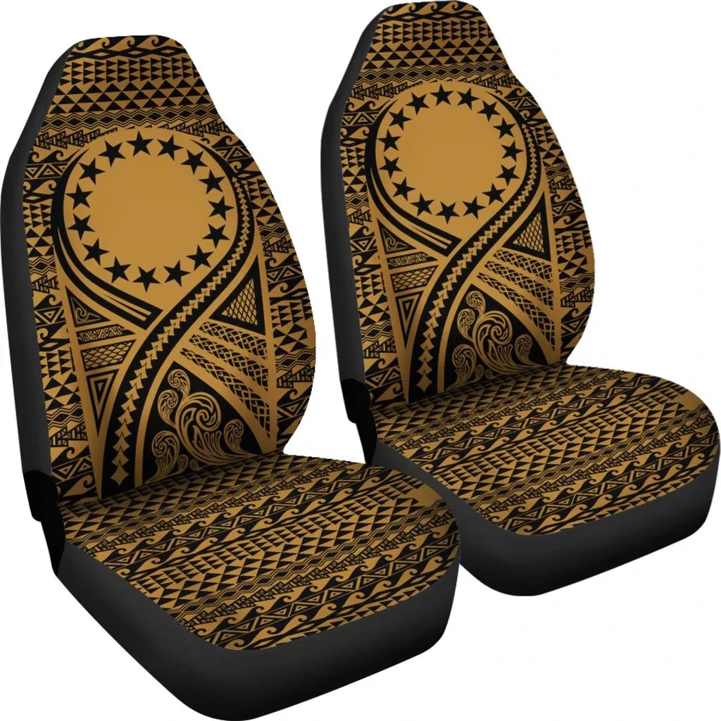 Cook Islands Car Seat Cover - Cook Islands Flag Polynesian Tattoo Gold