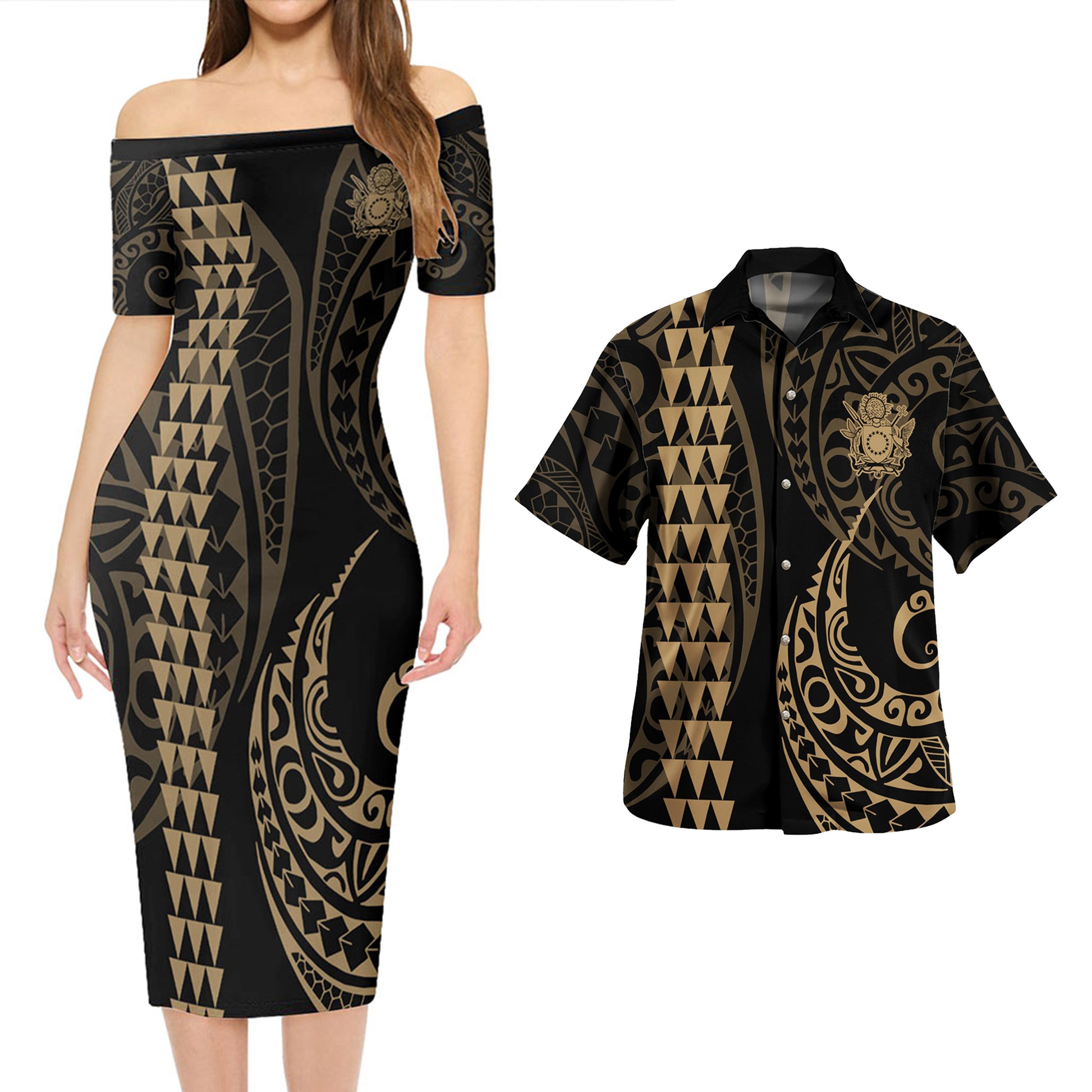 Cook Islands Combo Short Sleeve Dress And Shirt Kakau Style Gold