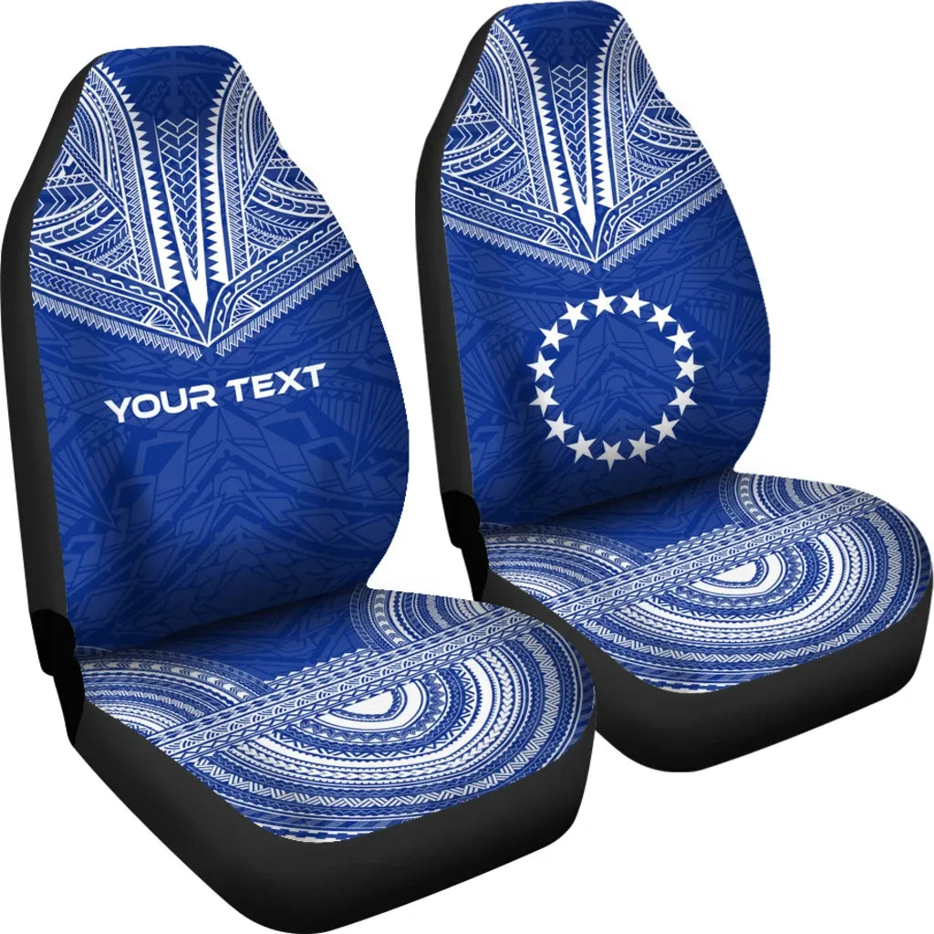 Cook Islands Custom Personalised Car Seat Cover - Cook Islands Flag Polynesian Chief Tattoo BLue Version