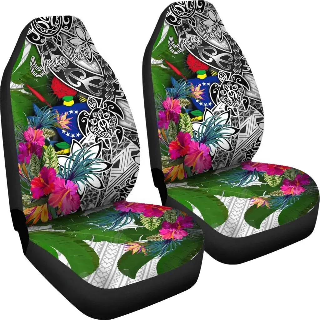 Cook Islands Custom Personalised Car Seat Covers White - Turtle Plumeria Banana Leaf