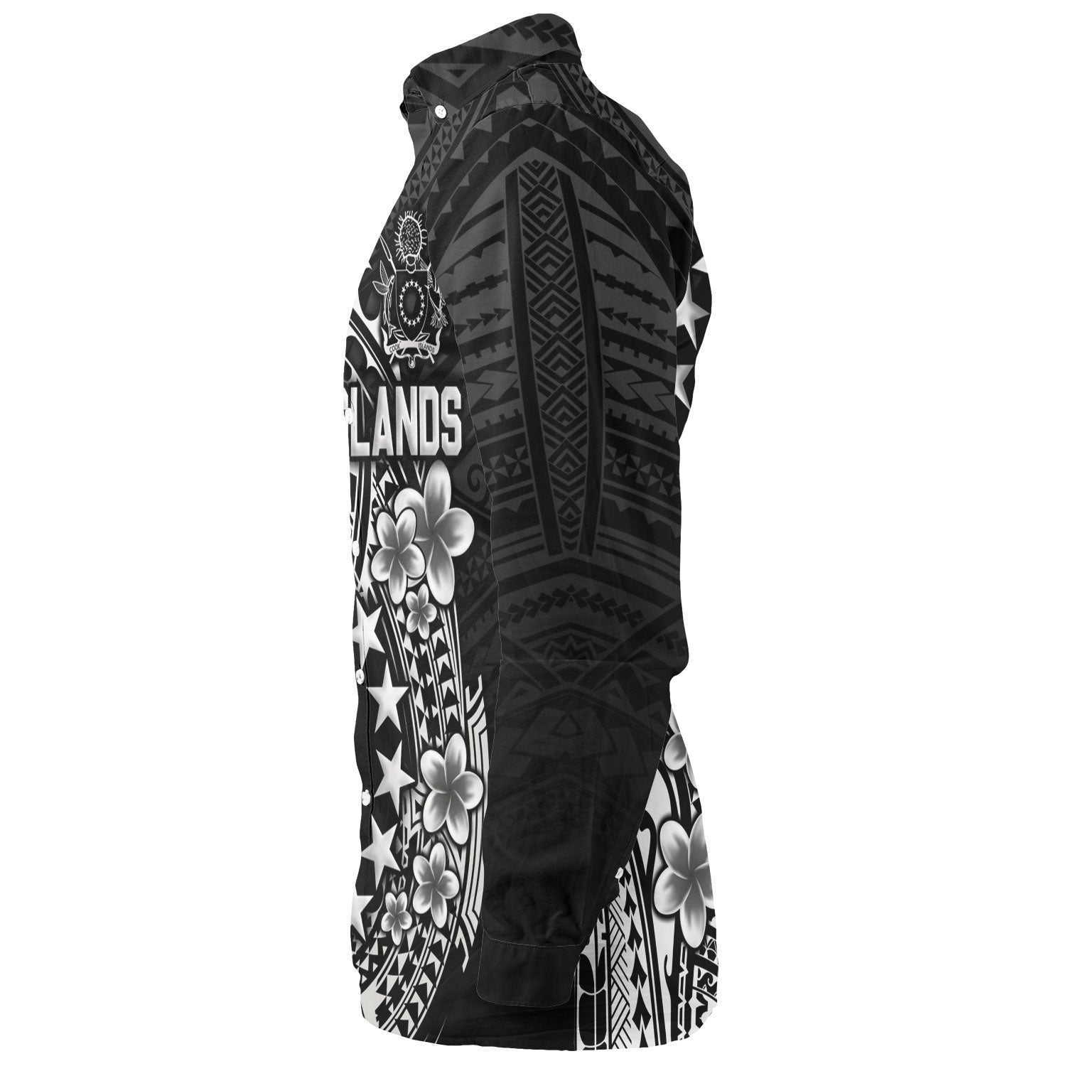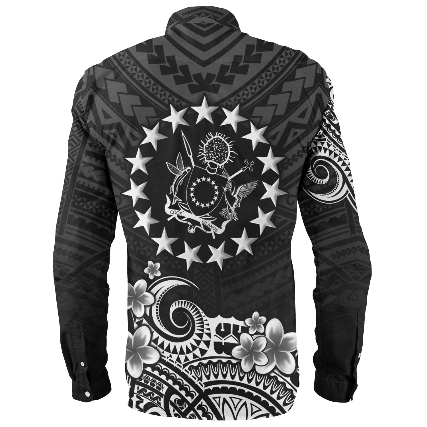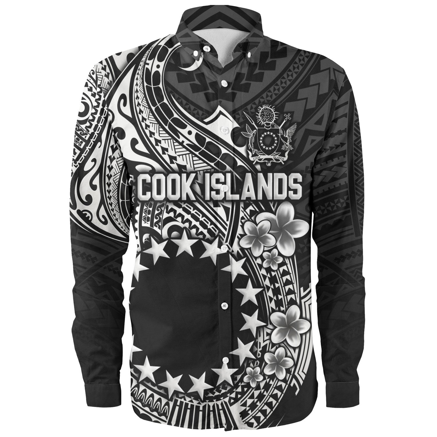 Cook Islands Long Sleeve Shirt Plumeria Flowers Tribal Motif Design