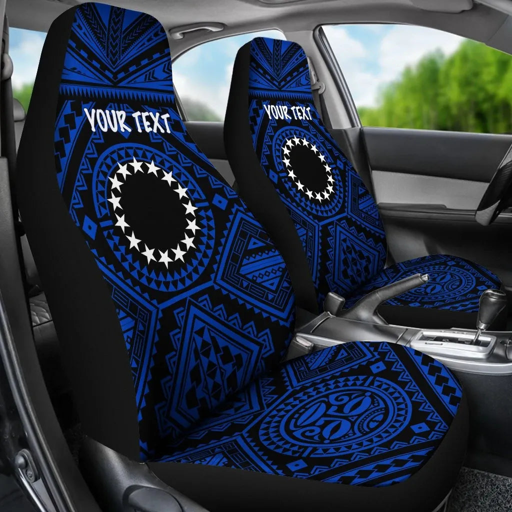 Cook Islands Personalised Car Seat Covers - Seal With Polynesian Tattoo Style ( Blue)
