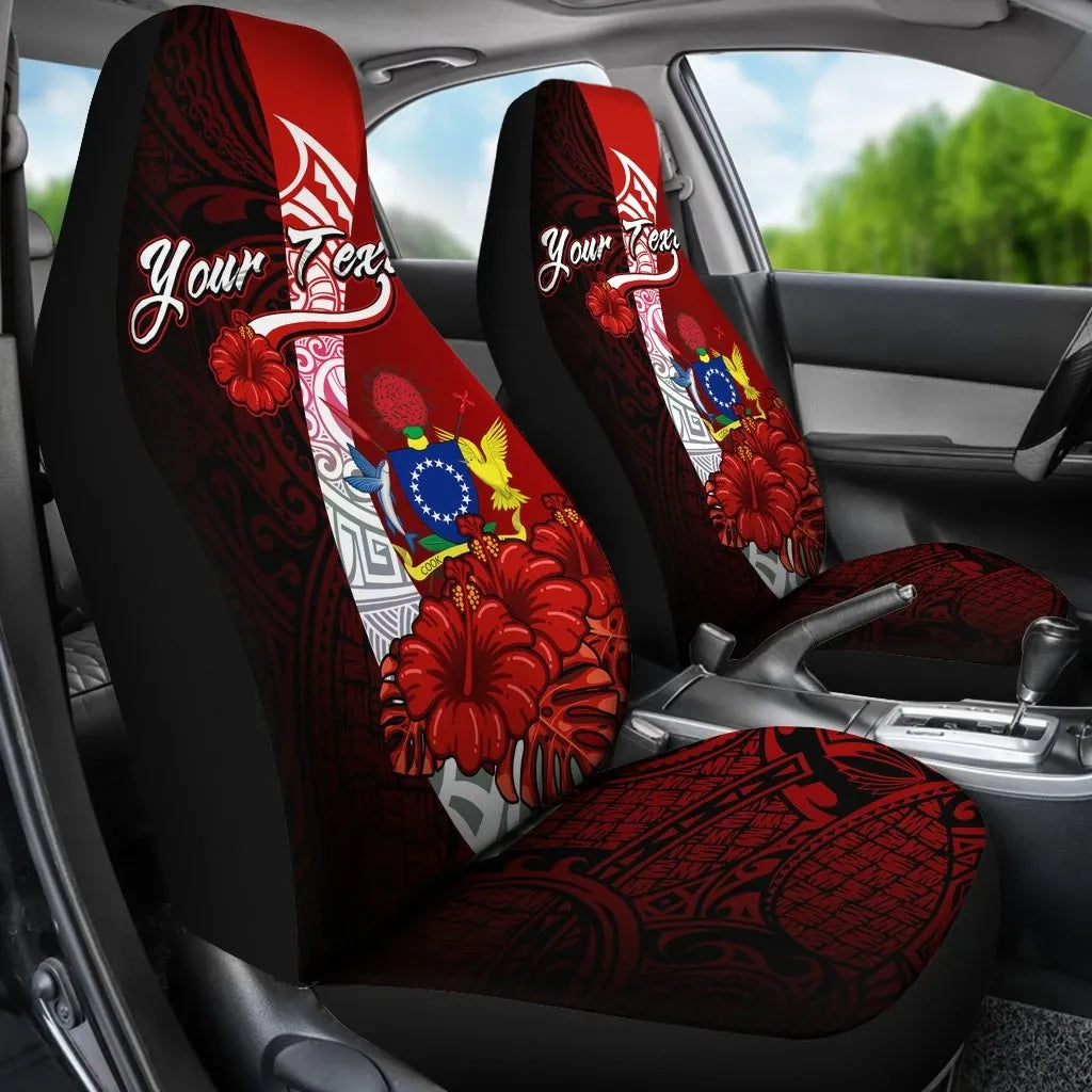 Cook Islands Polynesian Custom Personalised Car Seat Covers - Coat Of Arm With Hibiscus