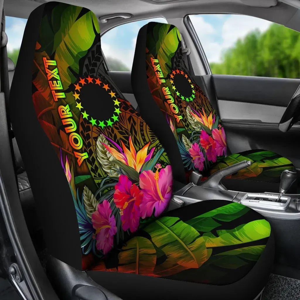 Cook Islands Polynesian Personalised Car Seat Covers - Hibiscus and Banana Leaves