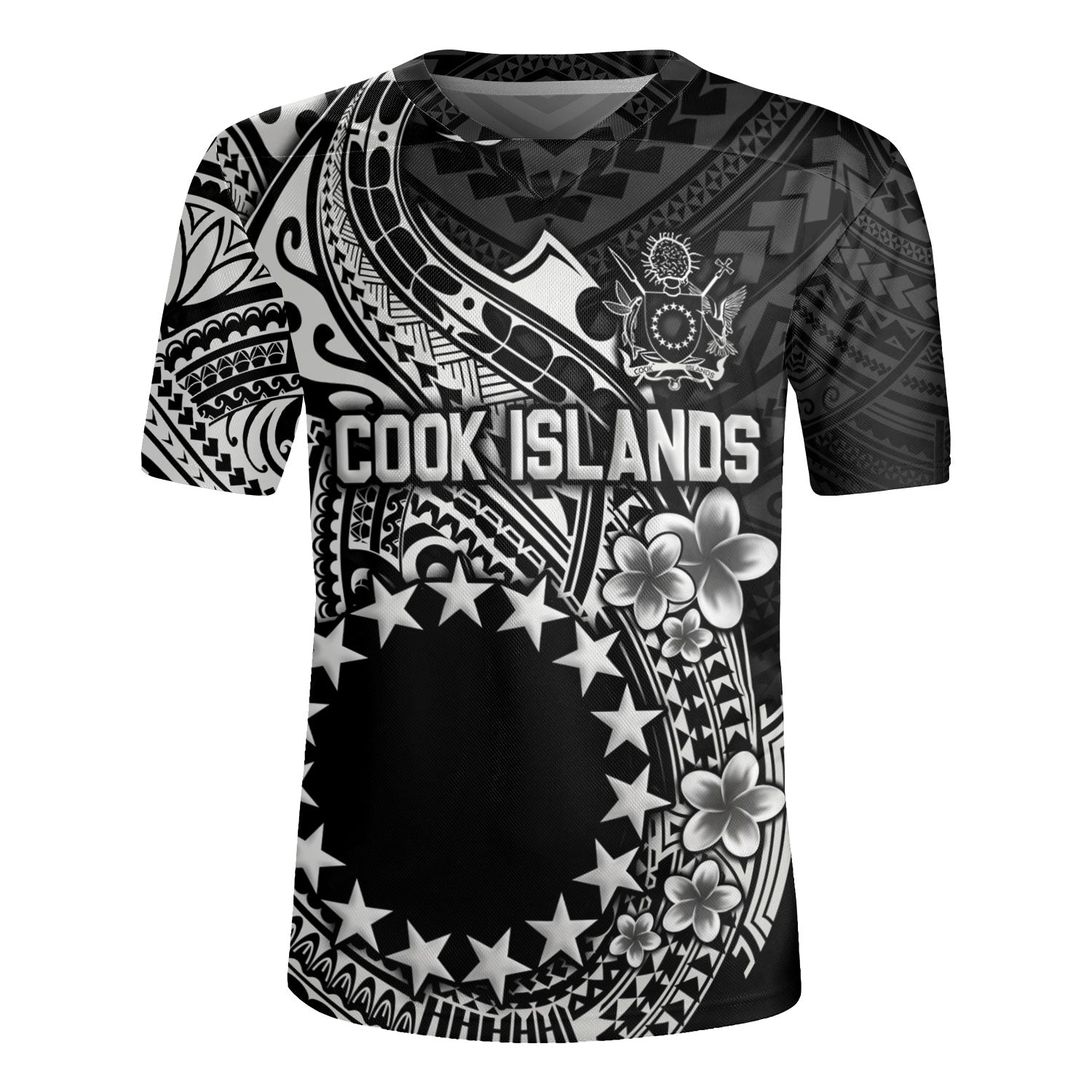 Cook Islands Rugby Jersey Plumeria Flowers Tribal Motif Design