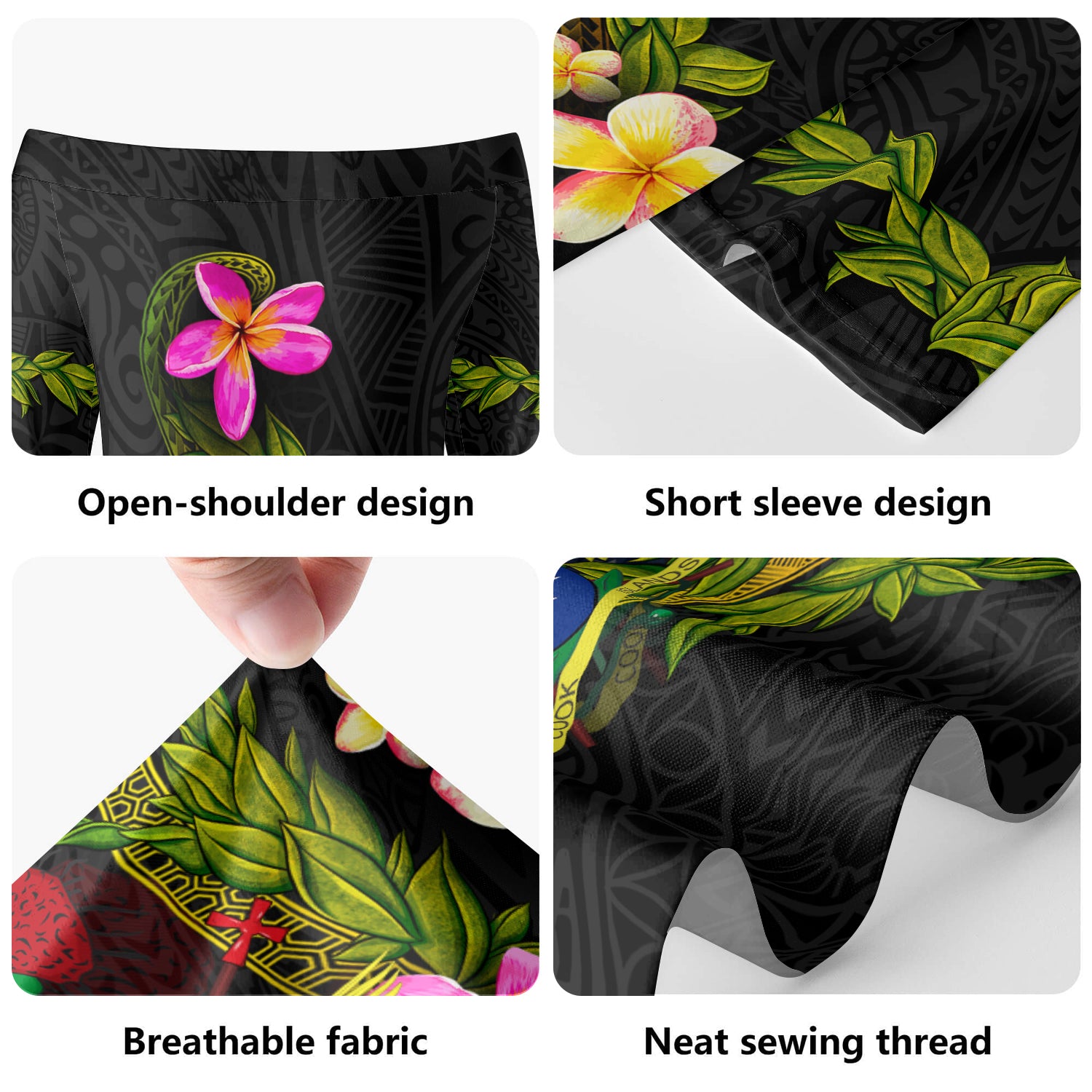Cook Islands Short Sleeve Off The Shoulder Lady Dress Plumeria Tribal