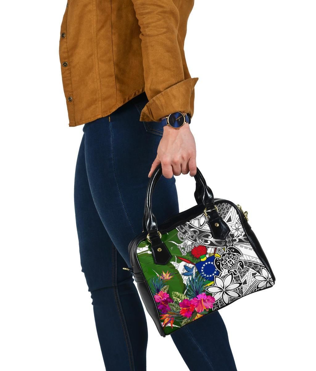 Cook Islands Shoulder Handbag White - Turtle Plumeria Banana Leaf