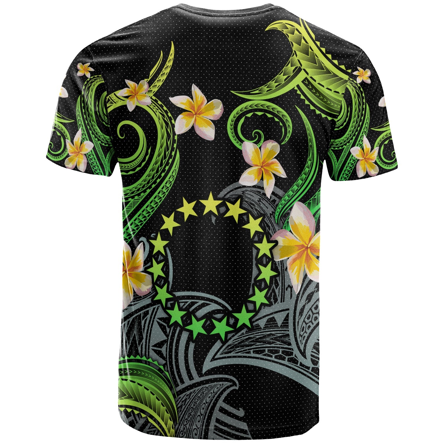 Cook Islands T-shirt - Custom Personalised Polynesian Waves with Plumeria Flowers (Green)
