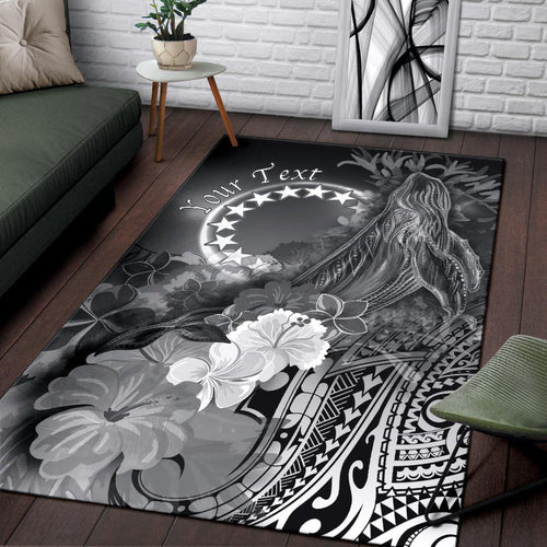 Cook Islandss Custom Personalised Area Rug - Humpback Whale with Tropical Flowers (White)