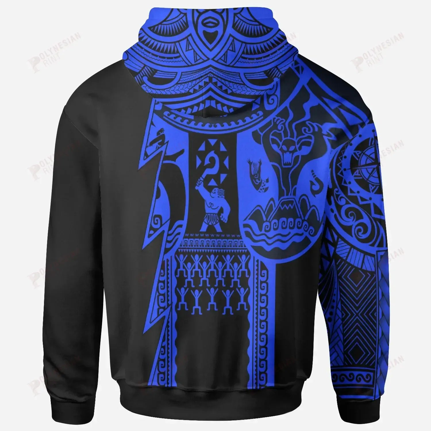 (Custom Personalised Text) Samoa All Over Hoodie - Samoa Coat Of Arms Blue New
