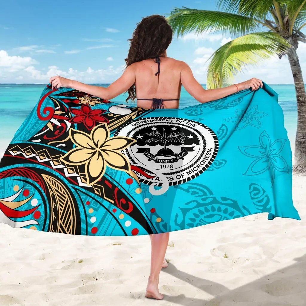 Federated States of Mariana Sarong - Tribal Flower With Special Turtles Blue Color