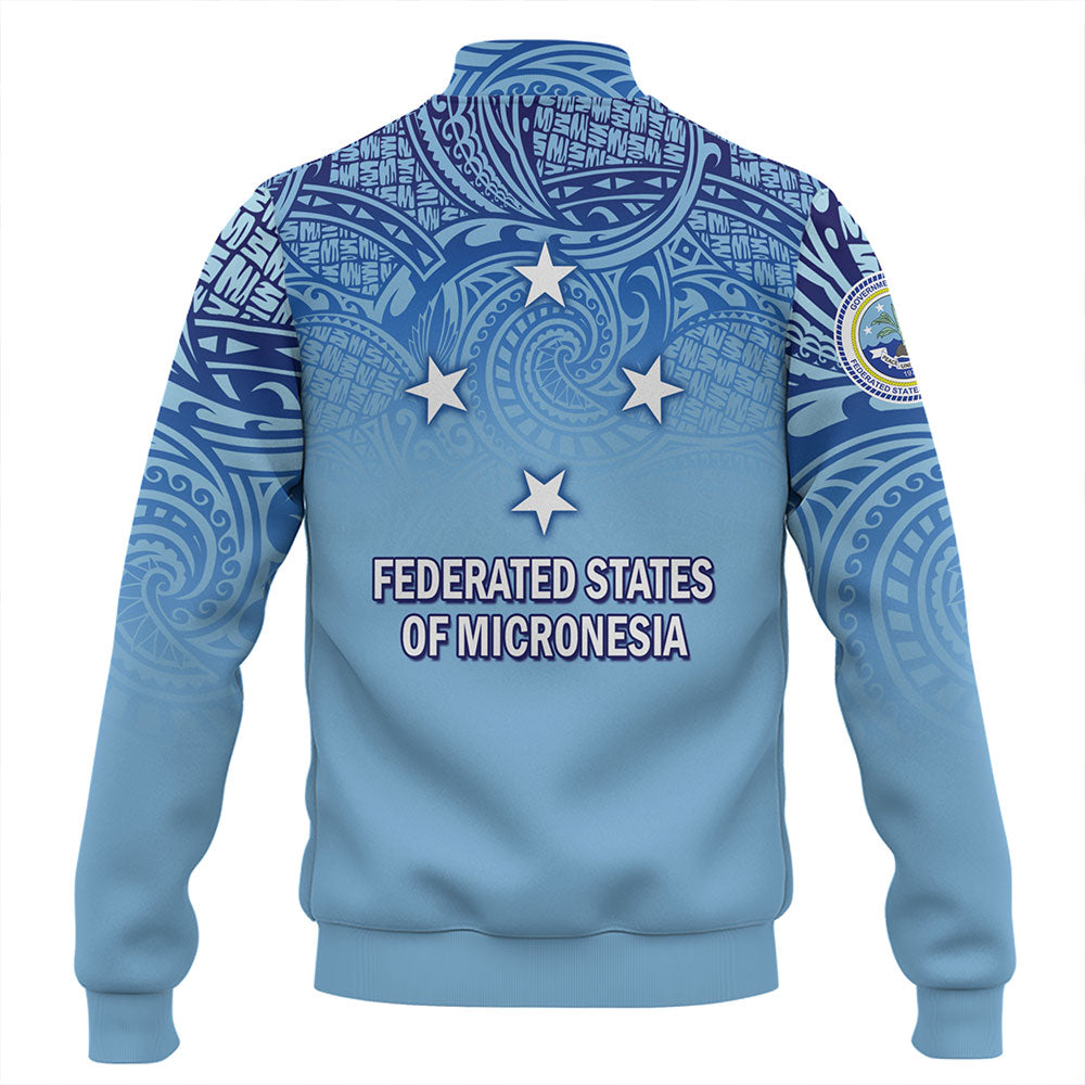 Federated States Of Micronesia Baseball Jacket - Flag Color With Traditional Patterns