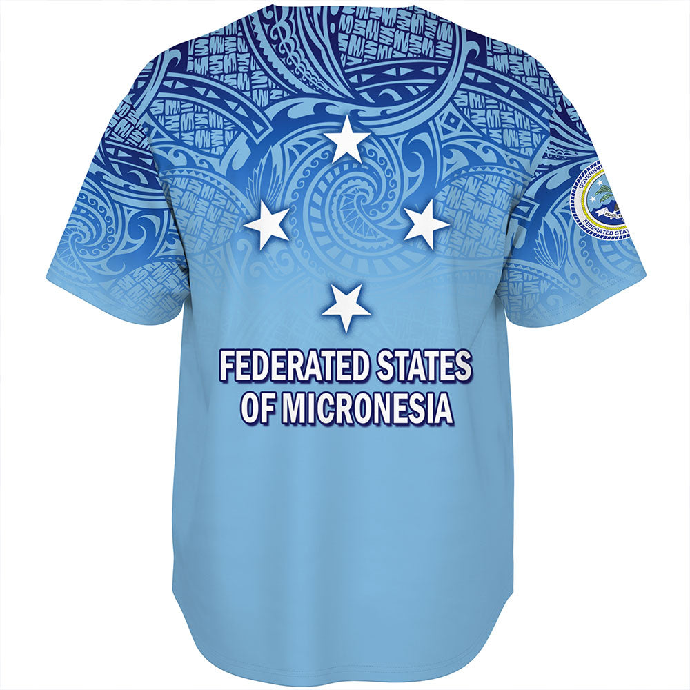 Federated States Of Micronesia Baseball Shirt - Flag Color With Traditional Patterns