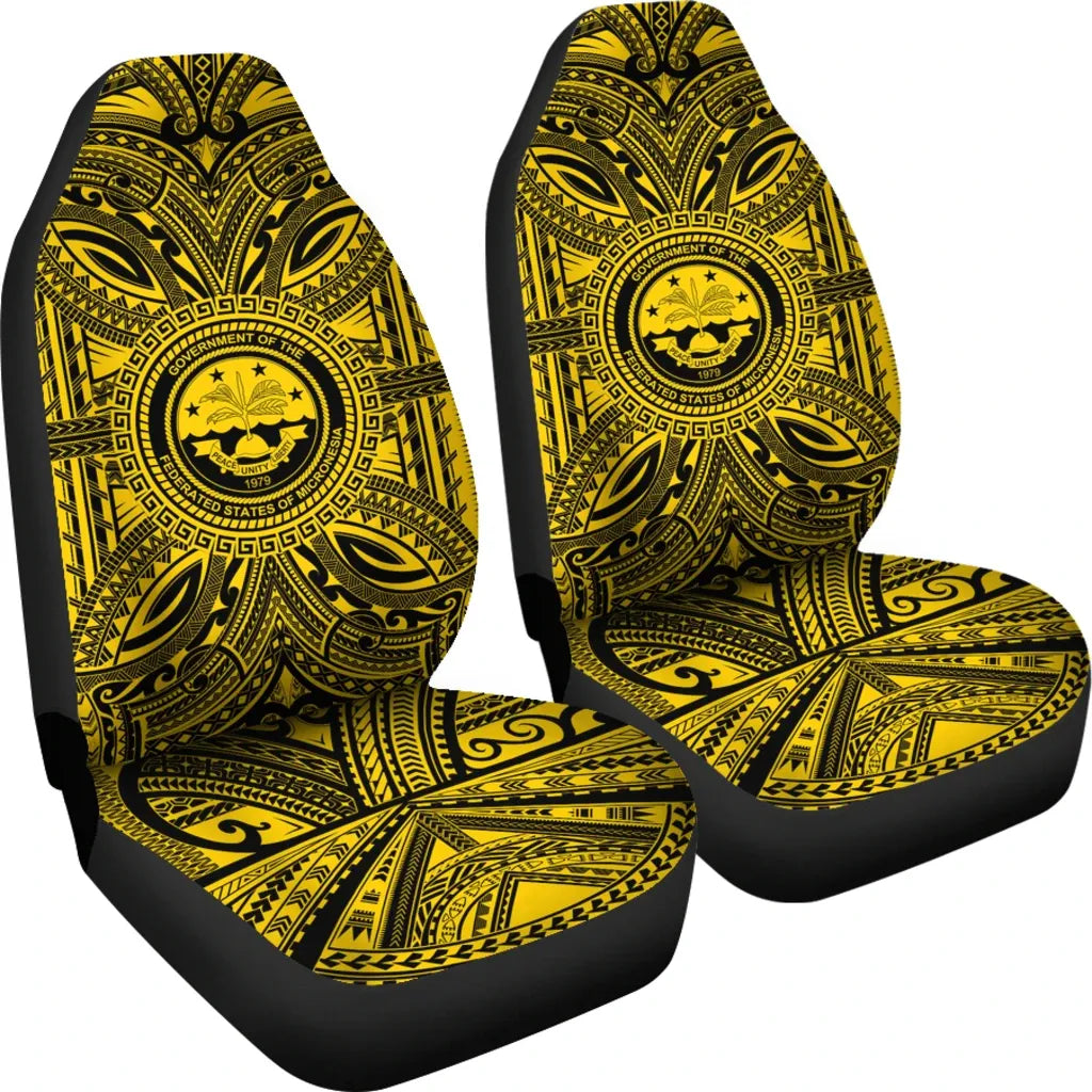 Federated States of Micronesia Car Seat Cover - Federated States of Micronesia Coat Of Arms Polynesian Gold Black