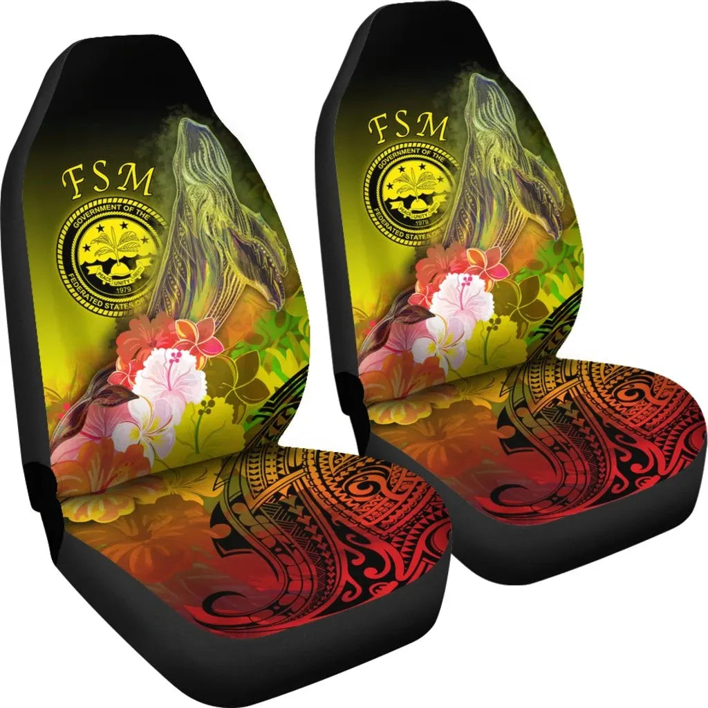 Federated States of Micronesia Car Seat Covers - Humpback Whale with Tropical Flowers (Yellow)