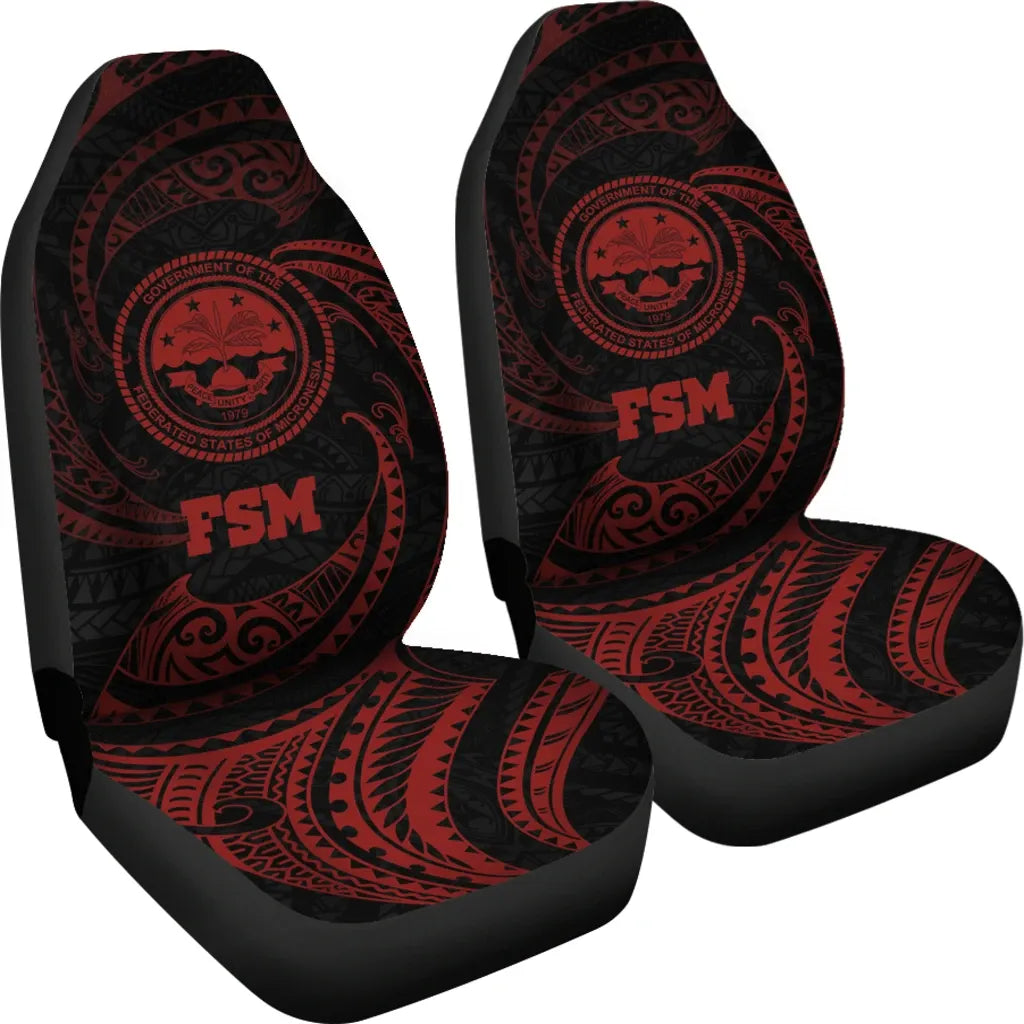 Federated States of Micronesia Car Seat Covers - Red Tribal Wave