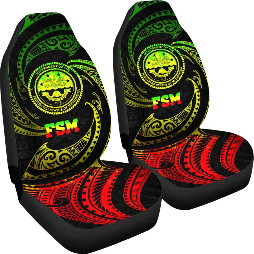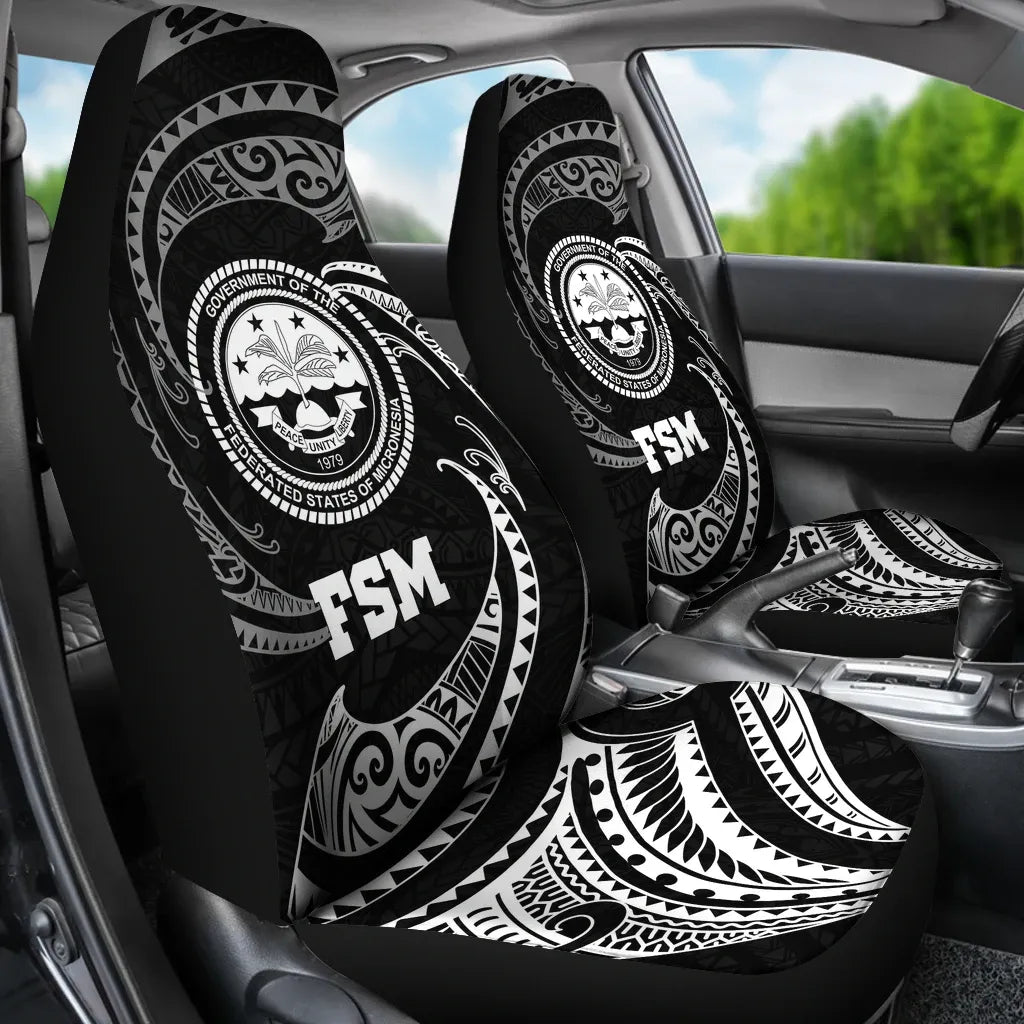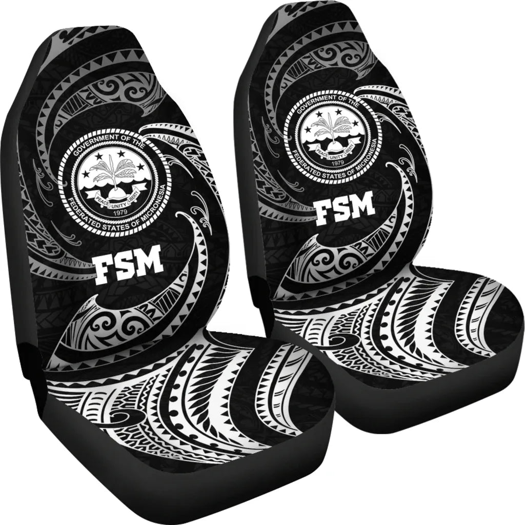 Federated States of Micronesia Car Seat Covers - White Tribal Wave