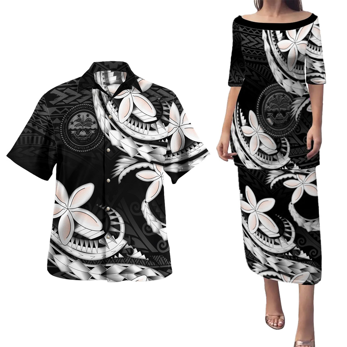 Federated States Of Micronesia Combo Puletasi And Shirt Polynesian Patterns Plumeria Flowers Special Style