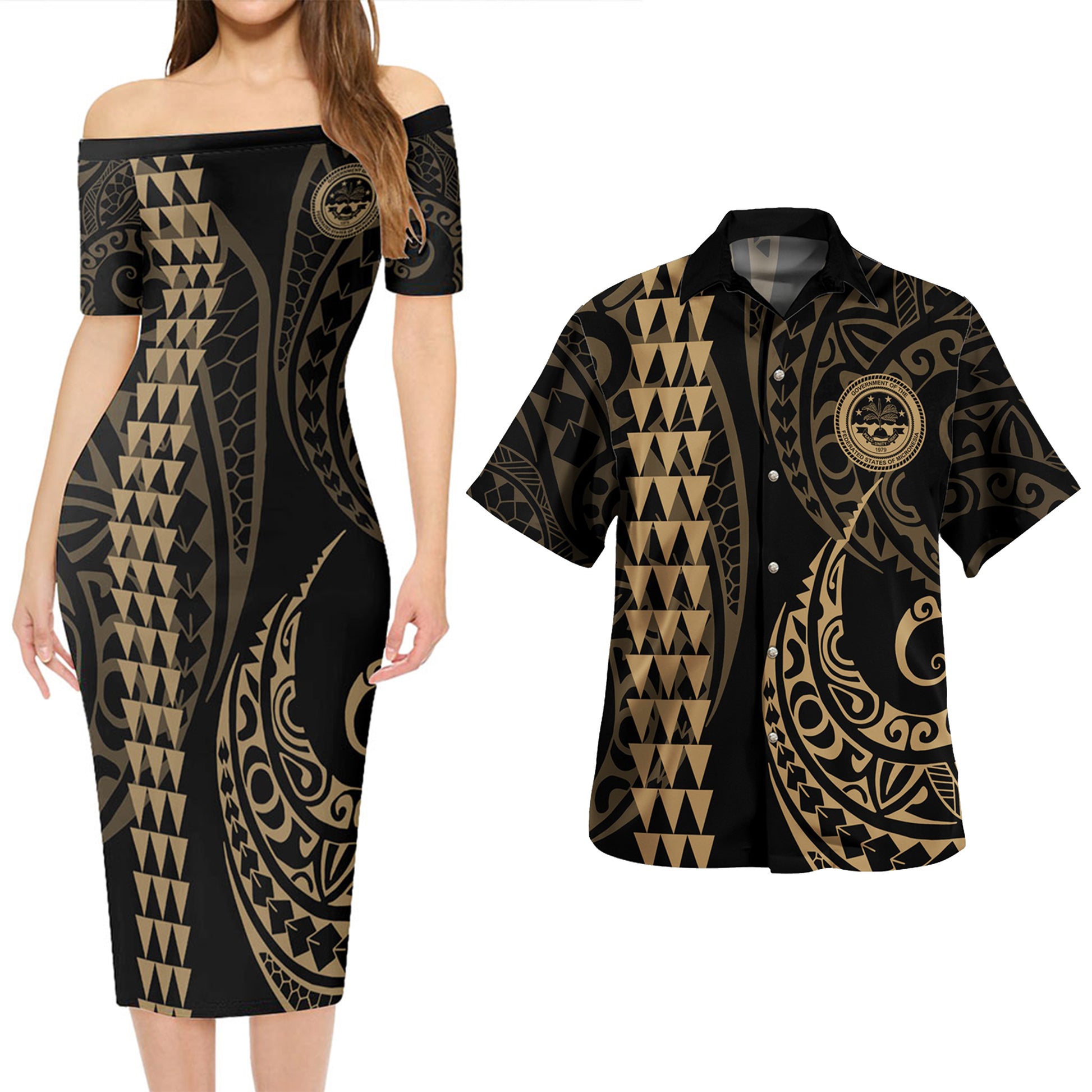 Federated States Of Micronesia Combo Short Sleeve Dress And Shirt Kakau Style Gold