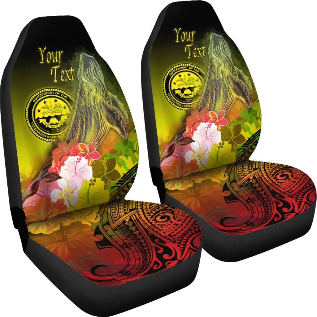 Federated States of Micronesia Custom Personalised Car Seat Cover - Humpback Whale with Tropical Flowers (Yellow)