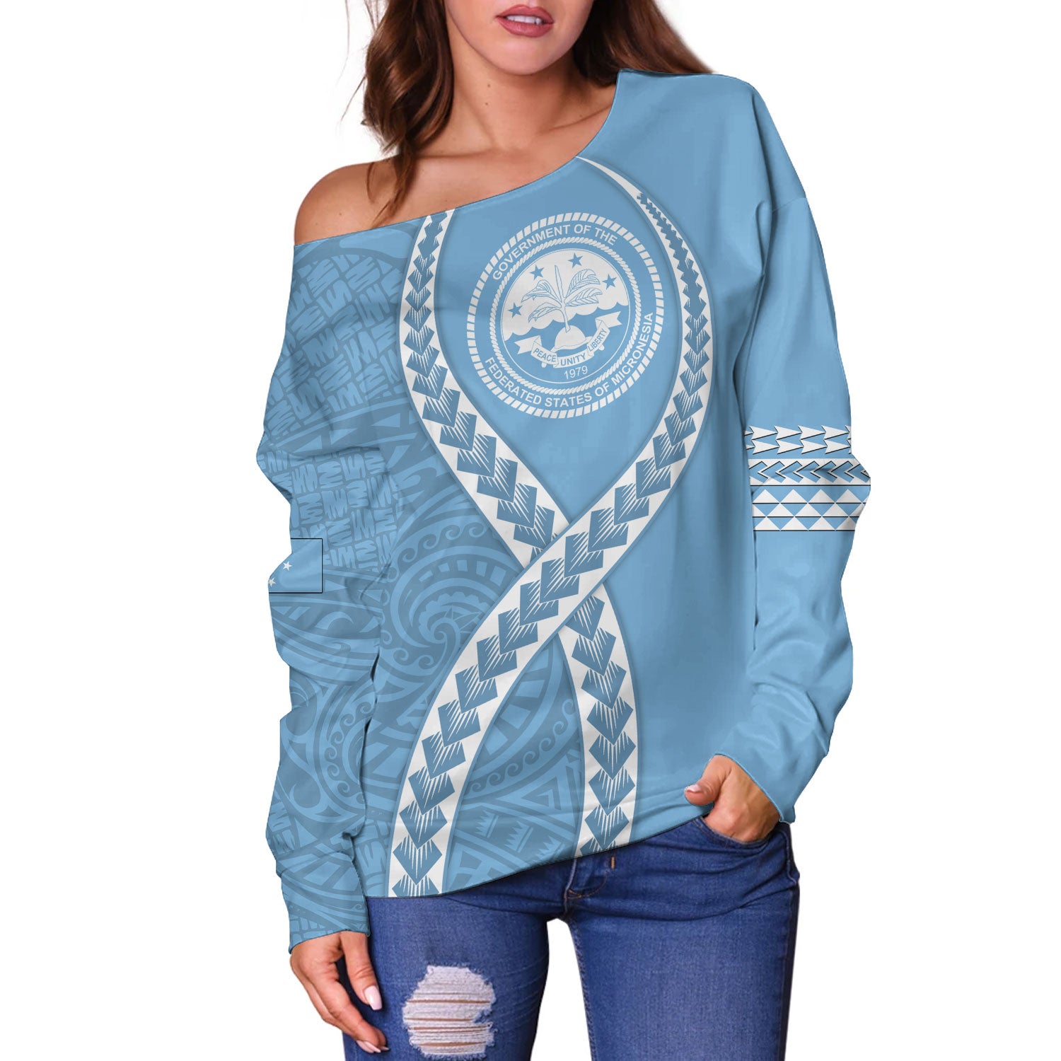 Federated States of Micronesia Off Shoulder Sweatshirt Tribal Polynesian In My Heart