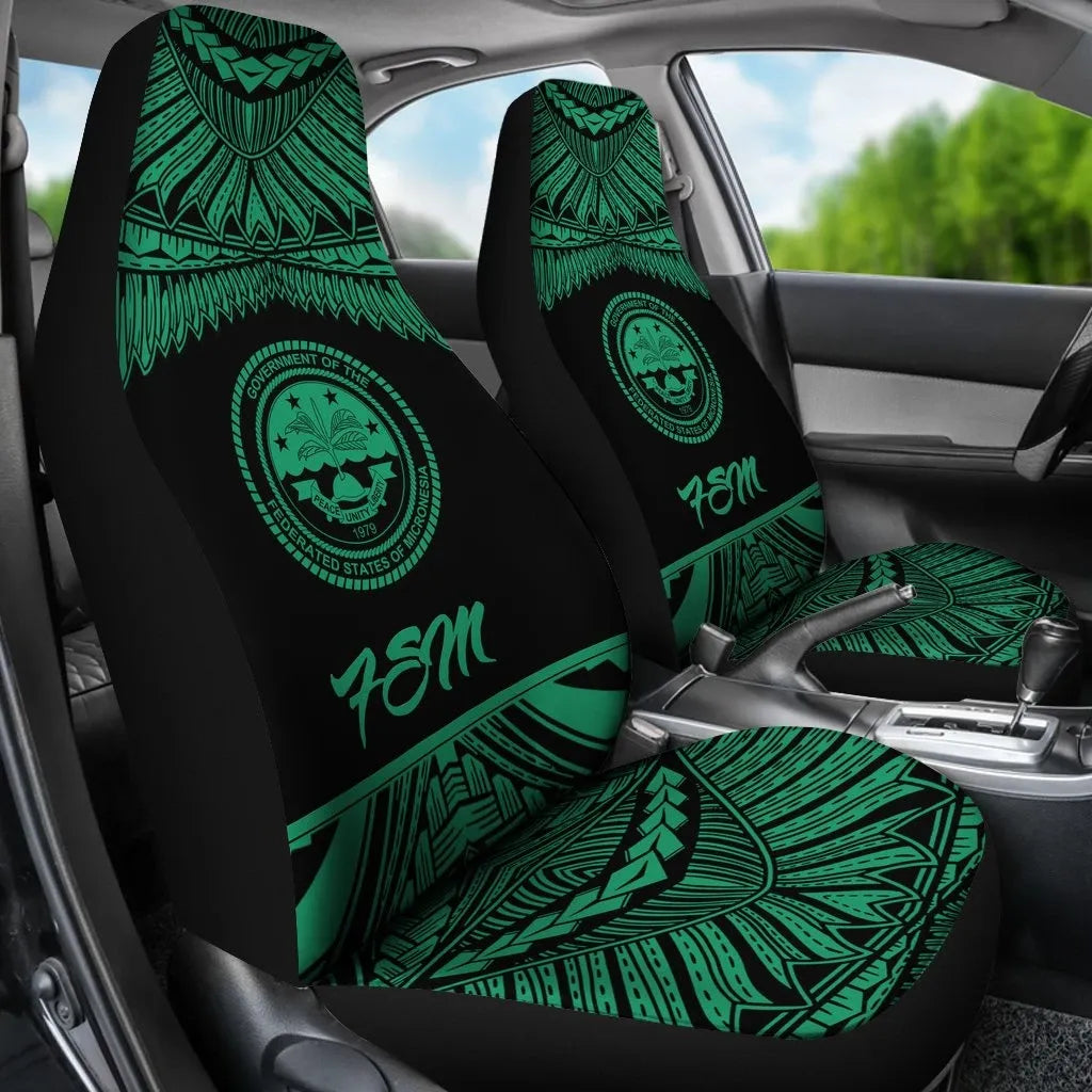 Federated States Of Micronesia Polynesian Car Seat Covers - Pride Green Version