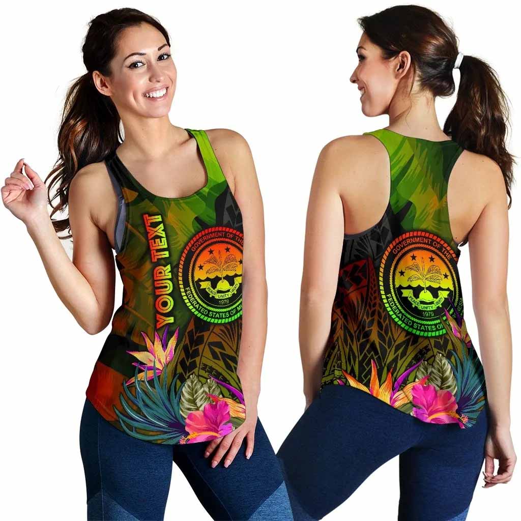 Federated States of Micronesia Polynesian Personalised Women Racerback Tanks - Hibiscus and Banana Leaves