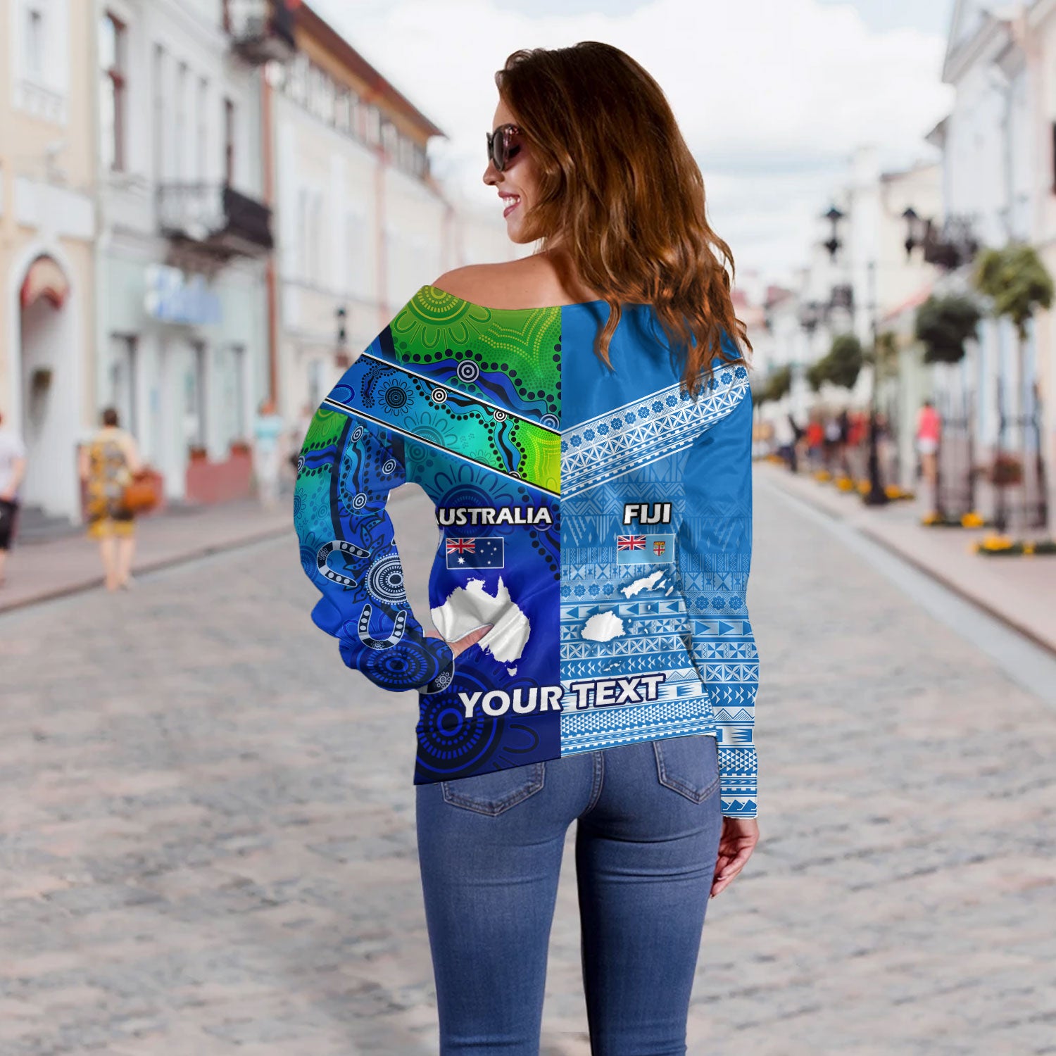 Fiji And Australia Custom Personalised Off Shoulder Sweatshirt Fijian Tapa With Australia Aboriginal Style