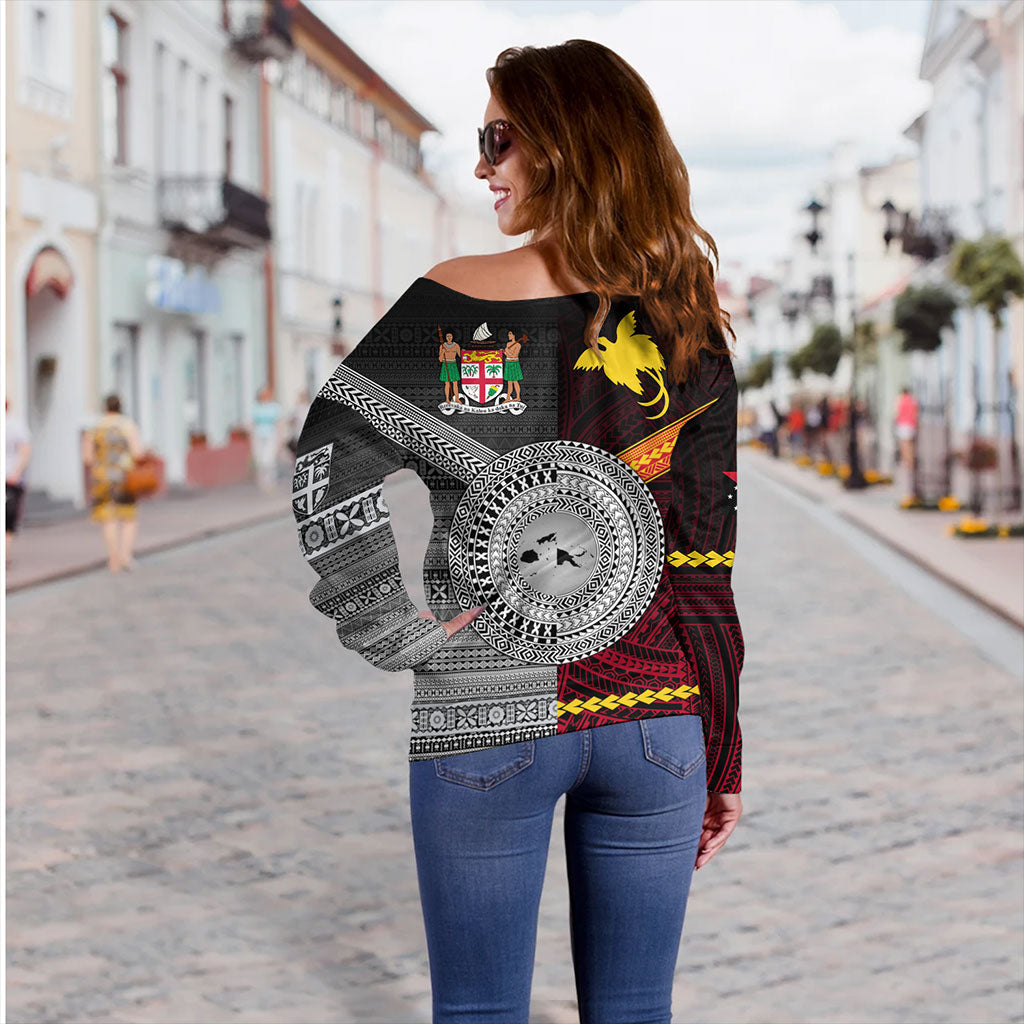Fiji And Papua Off Shoulder Sweatshirt Polynesian And Tapa Together