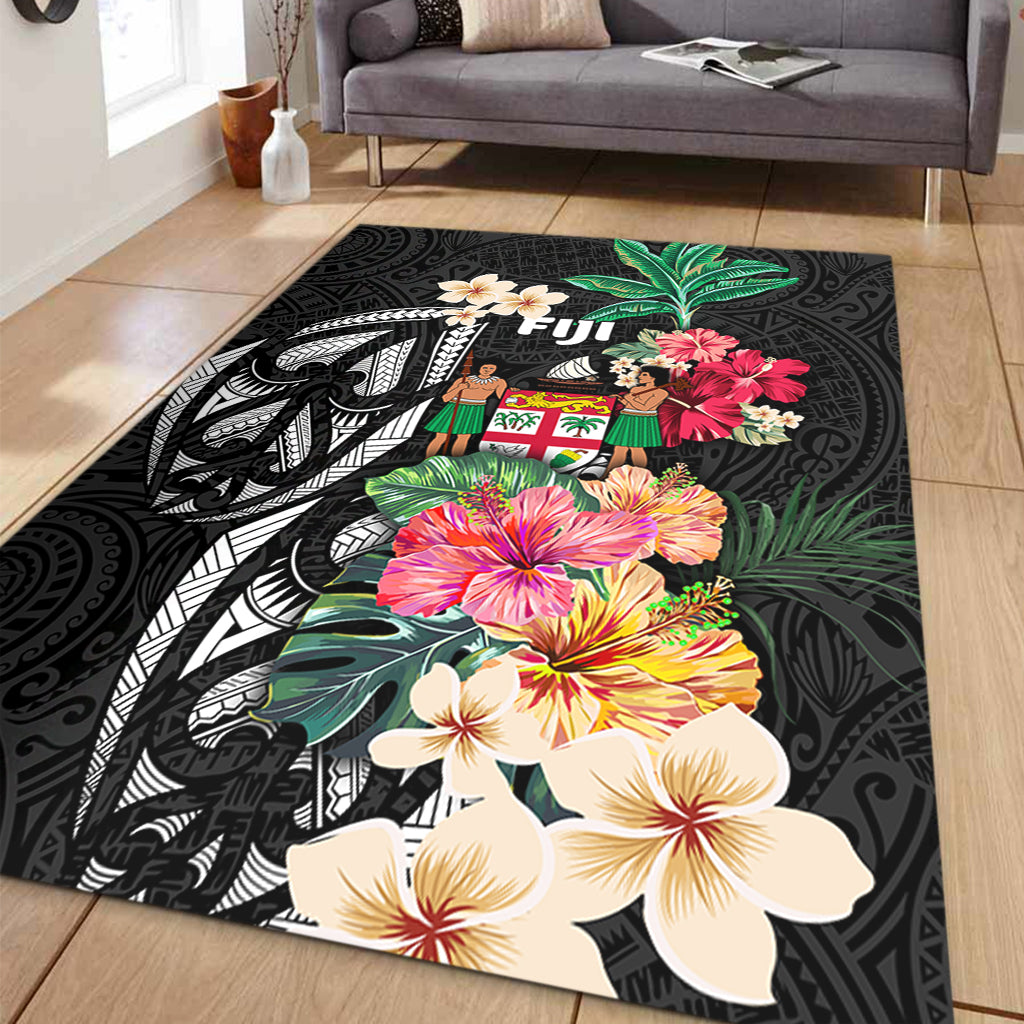 Fiji Area Rug Coat Of Arms Polynesian With Hibiscus