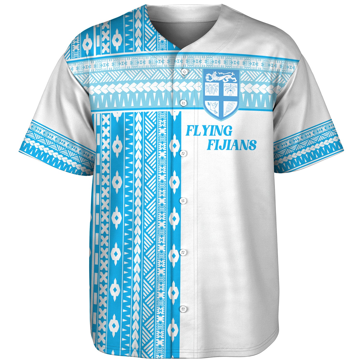 Fiji Baseball Shirt Custom Rugby Flying Fijian Makare And Tapa Design