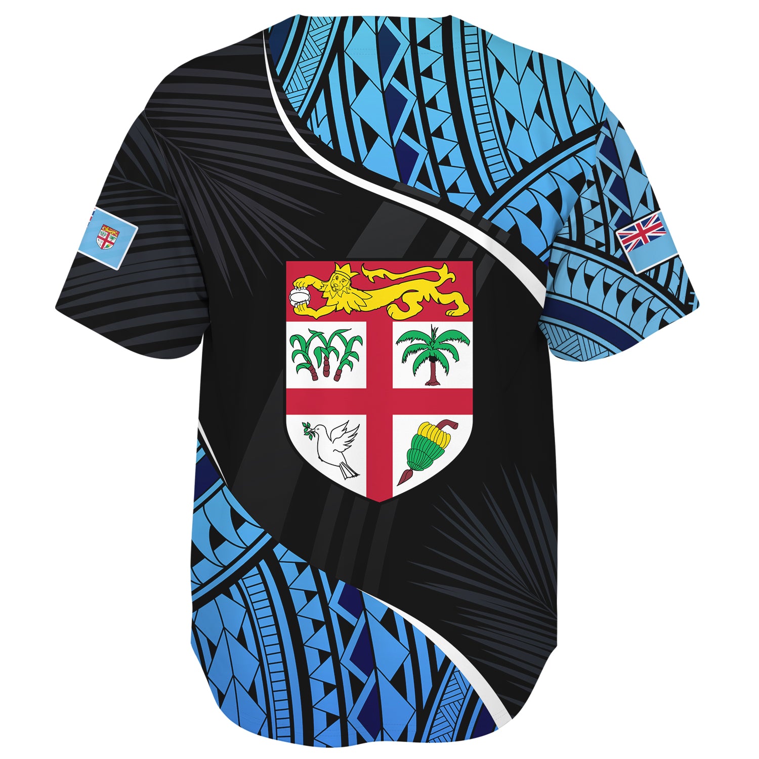 Fiji Baseball Shirt Fiji Map With Coat Of Arms Polynesian Tatau Half Black