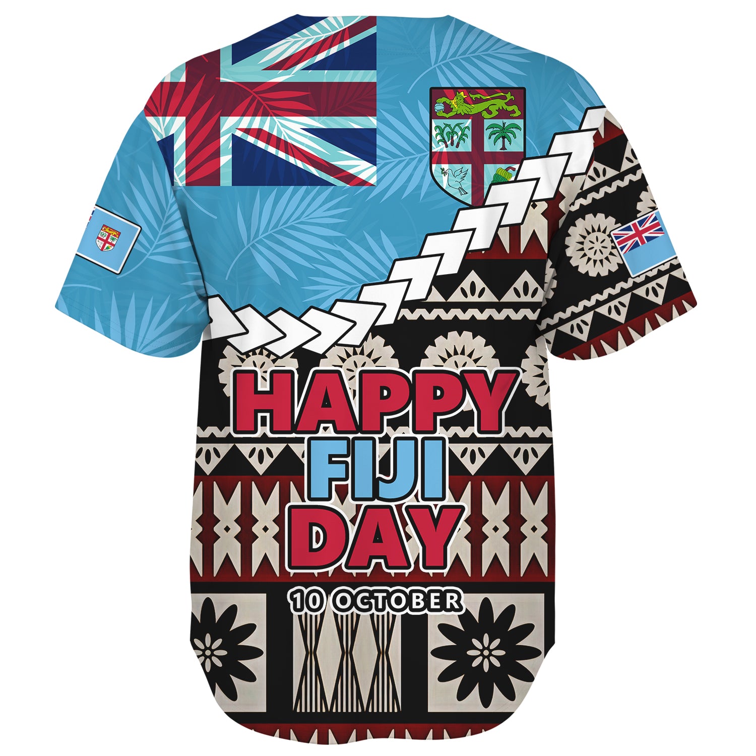 Fiji Baseball Shirt Happy Fiji Day Fijian Masi x Tropical Palm Leaf Tribal Curve Style