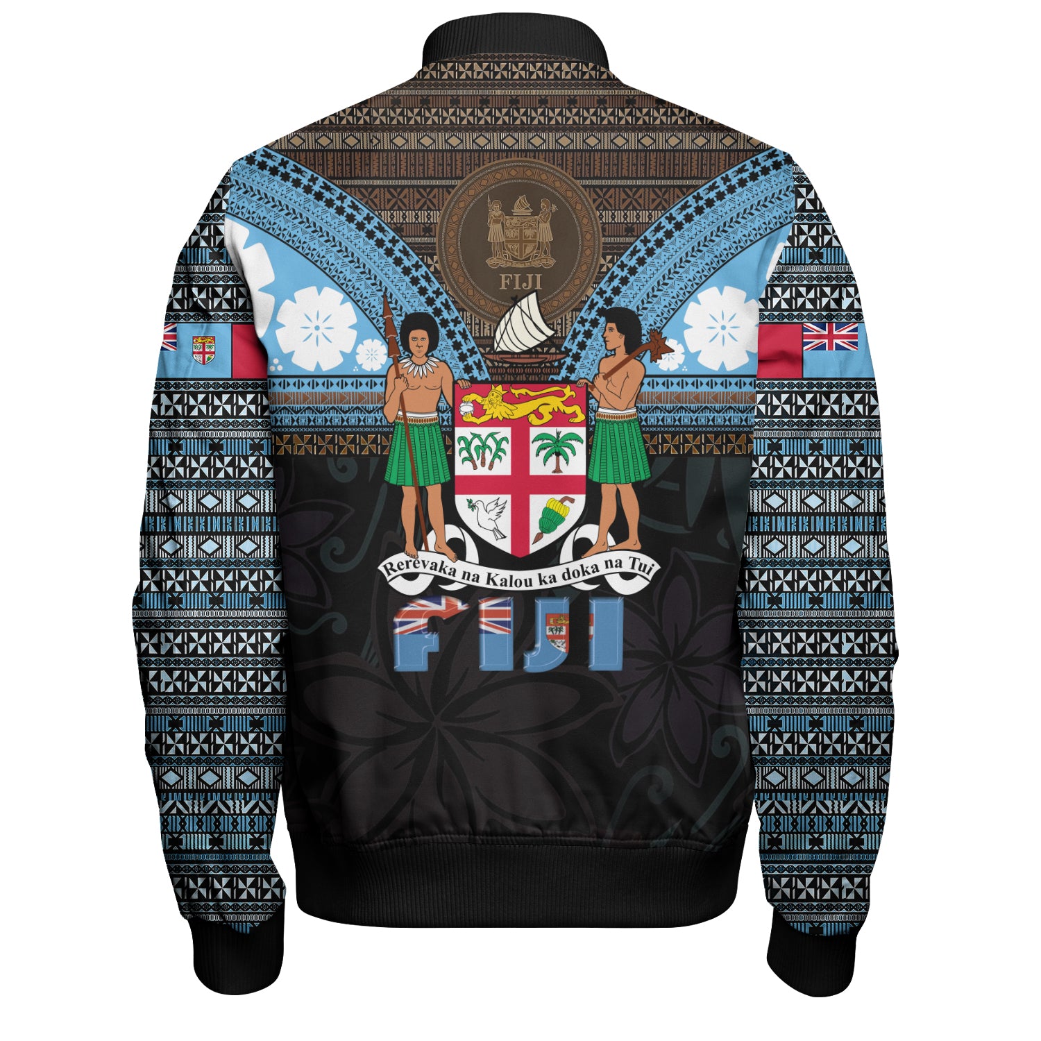 Fiji Bomber Jacket Fiji Brown Masi Design With Coat Of Arms Tribal Half Black