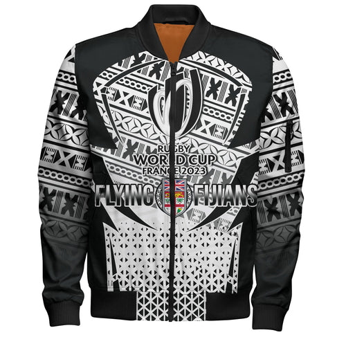 Fiji Bomber Jacket Flying Fijians Rugby Cup (Black-White Ver)