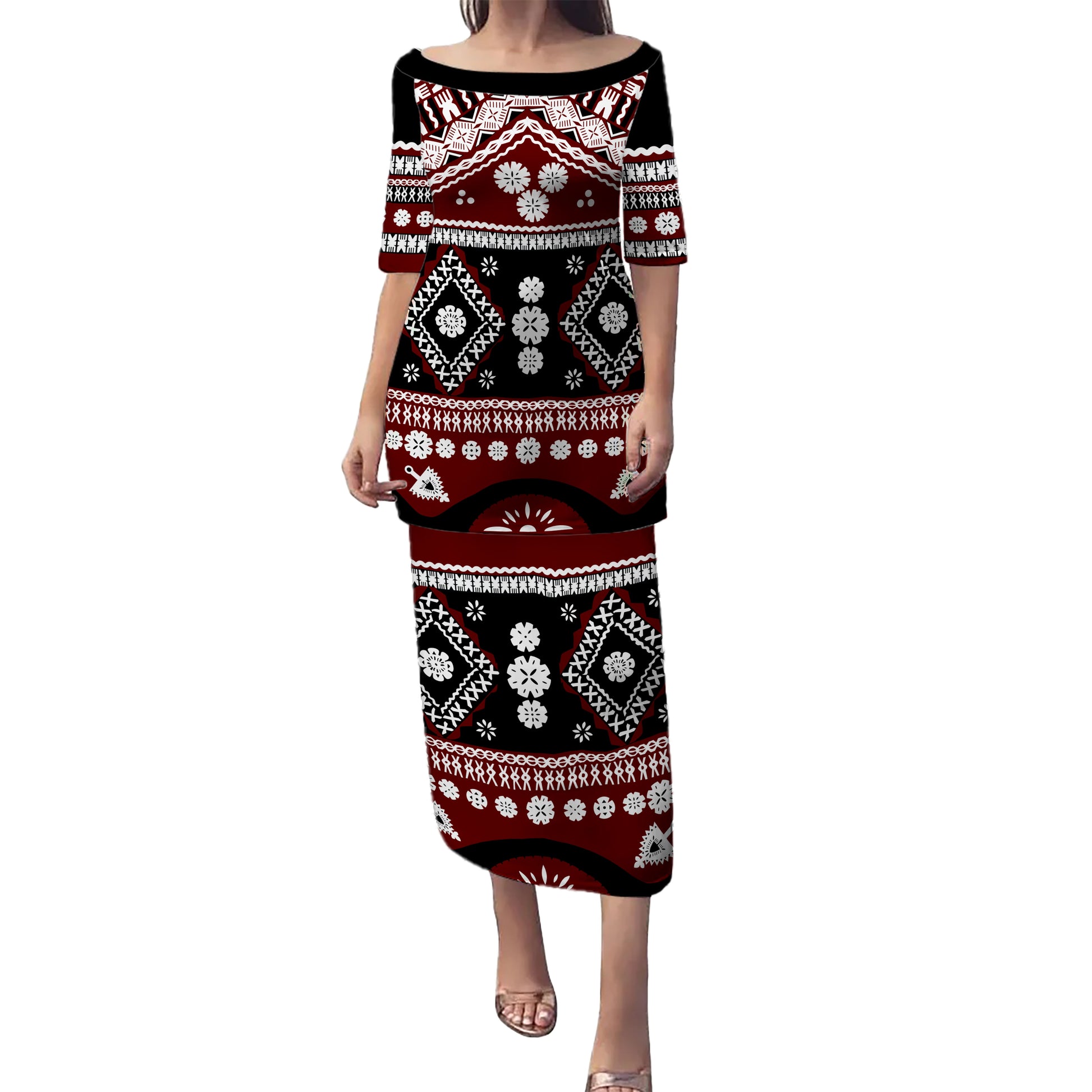 Fiji Combo Puletasi And Shirt Bula Masi Pattern Design Flower