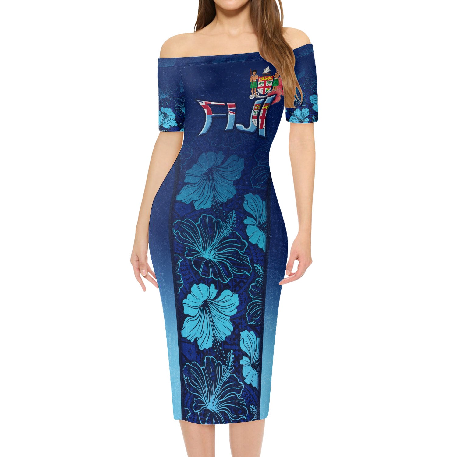 Fiji Combo Short Sleeve Dress And Shirt Fijian Traditional Patterns Hibiscus Flowers