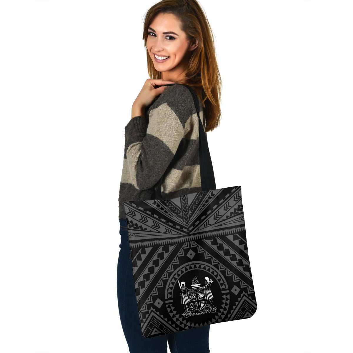 Fiji Crest Custom Personalised Tote Bag Polynesian Tattoo Style