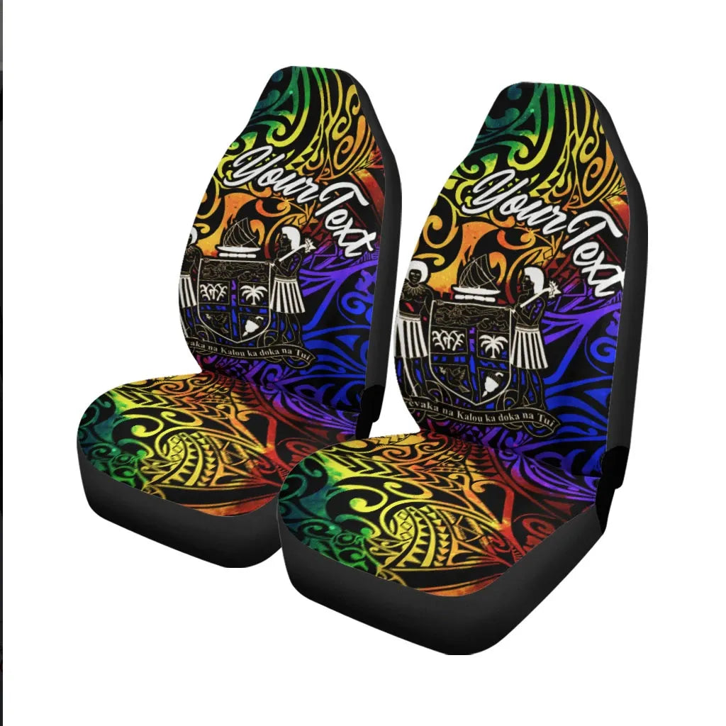 Fiji Custom Personalised Car Seat Covers - Rainbow Polynesian Pattern Crest