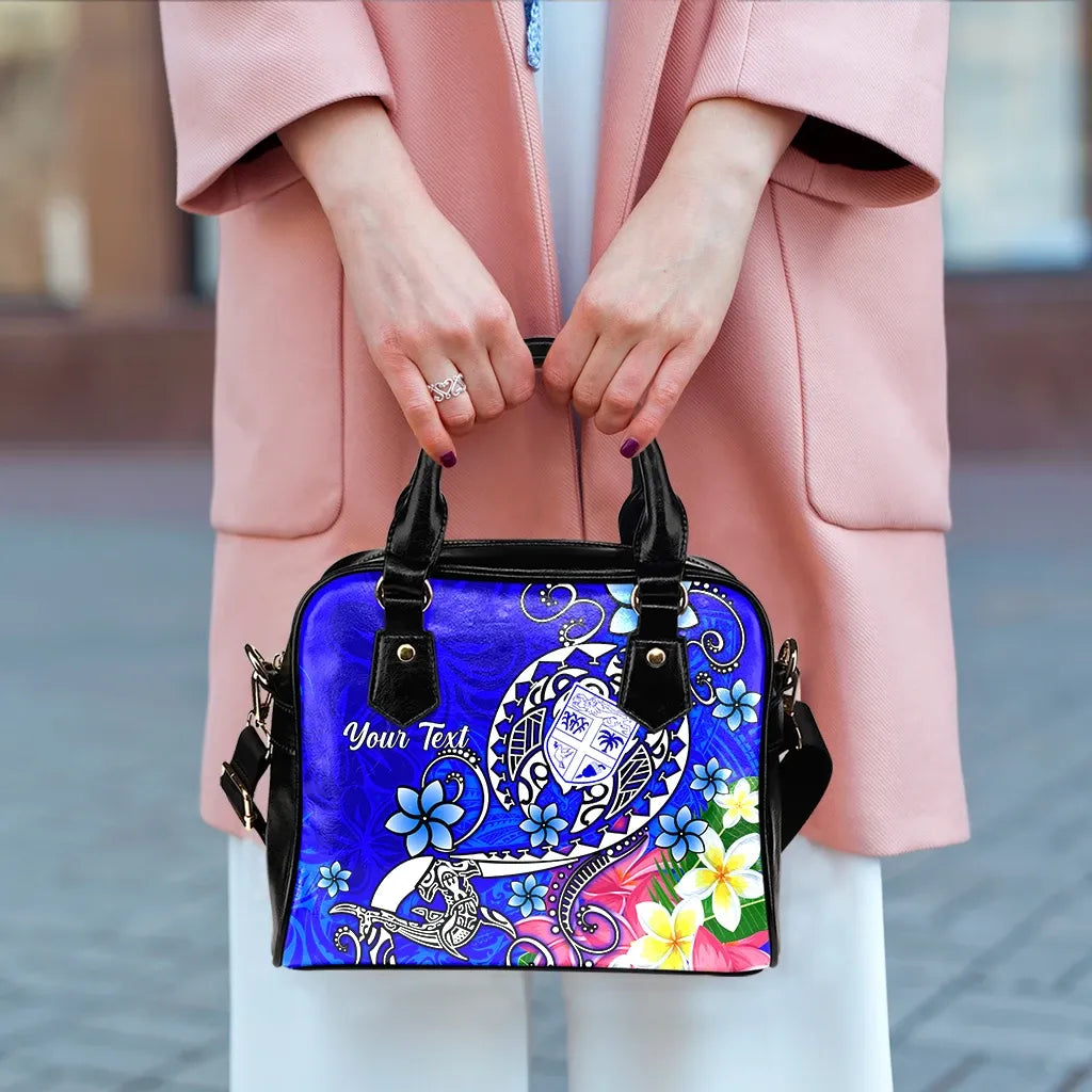 Fiji Custom Personalised Shoulder Handbag - Turtle Plumeria (Blue)