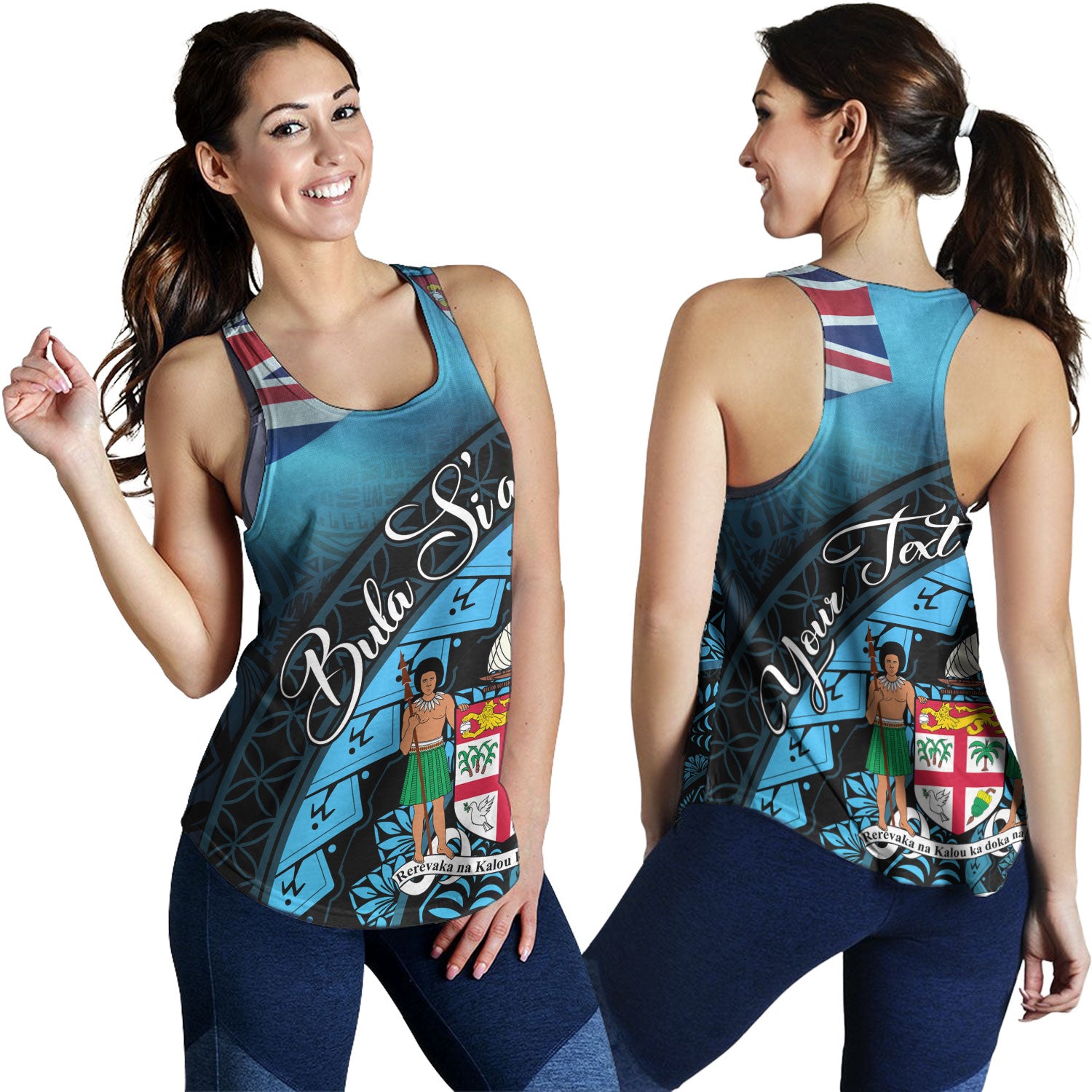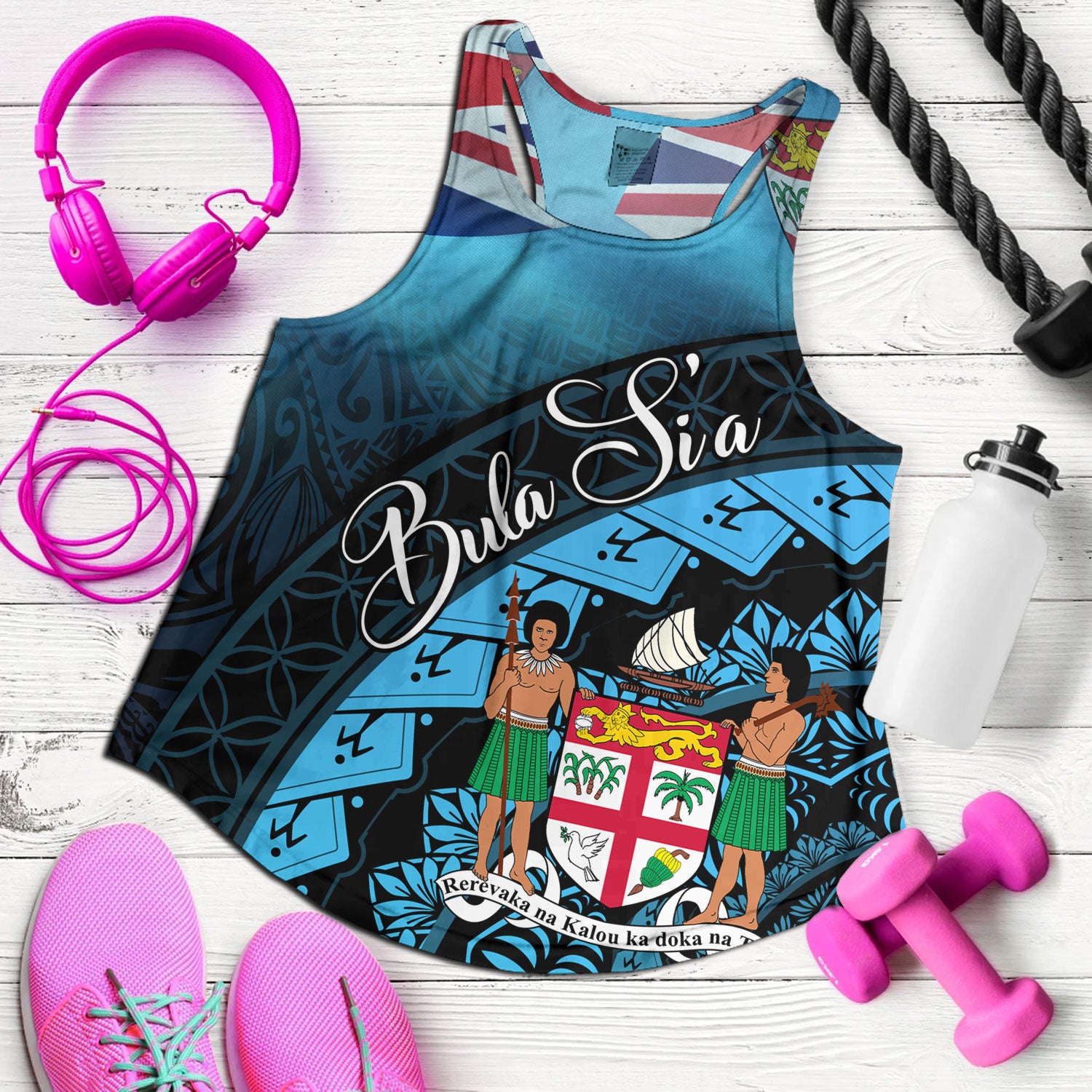 Fiji Custom Personalised Women Tank Bula Si'a Fijian Flag Tapa Patterns Style