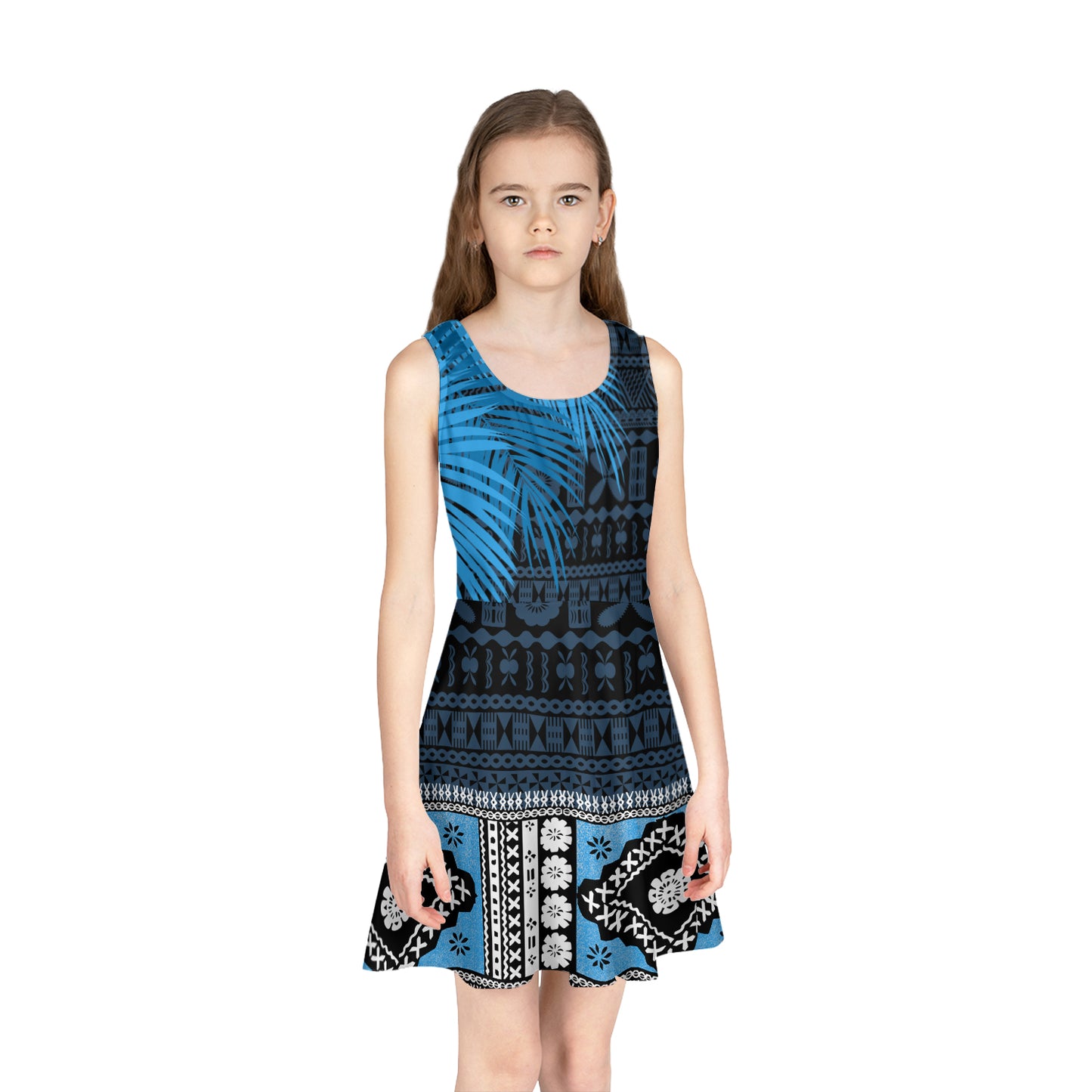 - Our Girls Sleeveless Sundress made of 95% polyester and 5% spandex manufactures high-quality thermal-transfer printed products and keeps you comfortable, cool, and dry while you work and play.