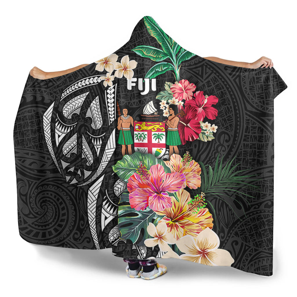 Fiji Hooded Blanket Coat Of Arms Polynesian With Hibiscus