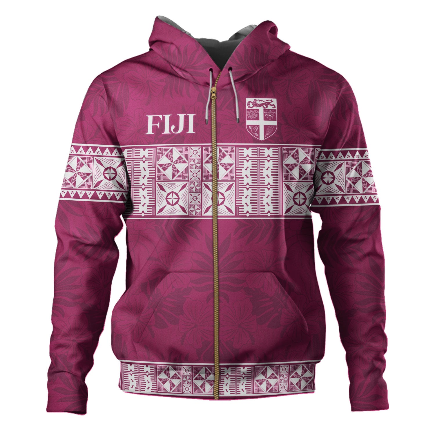Fiji Hoodie Custom Traditional Fijian Masi Pink Color