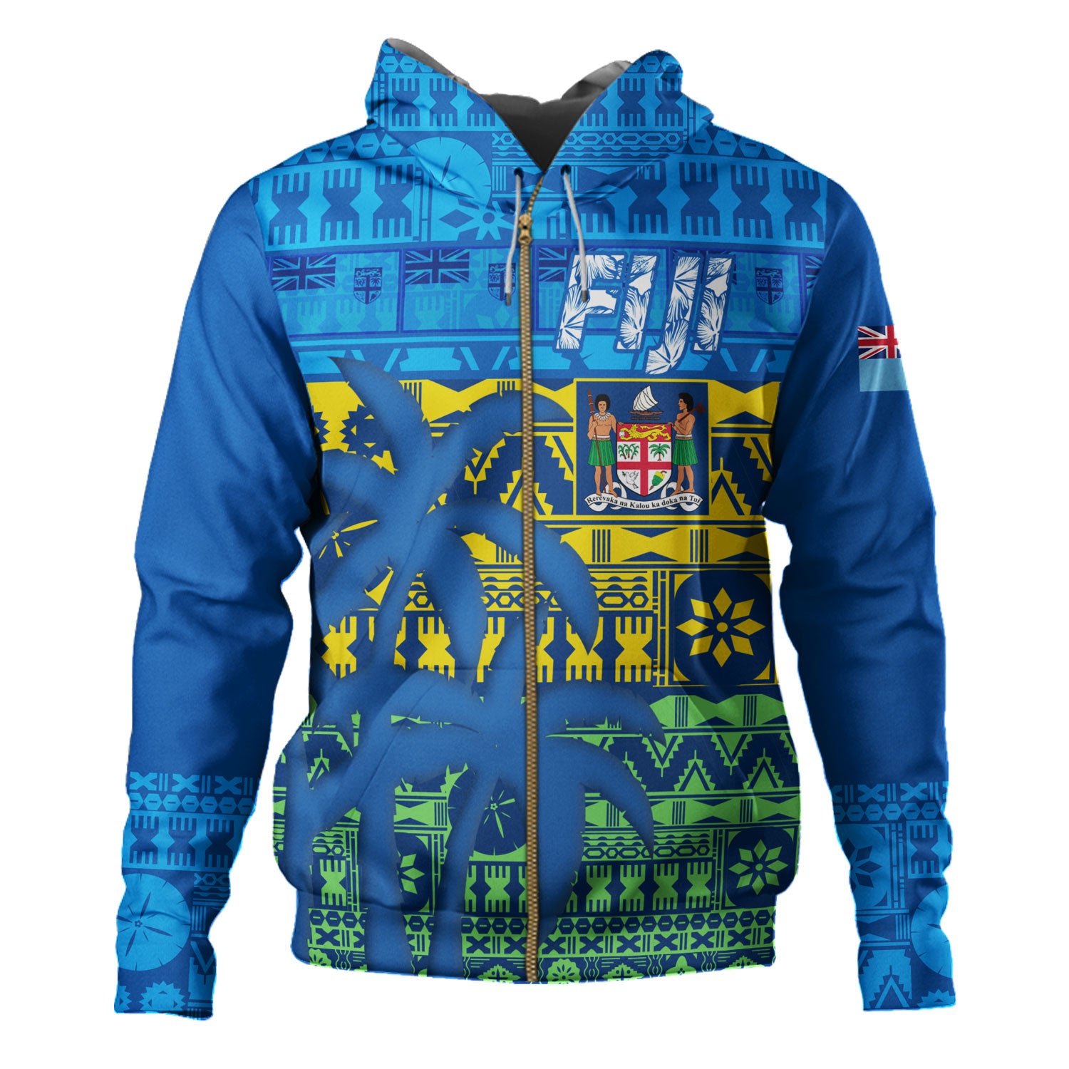 Fiji Hoodie Fijian Tapa Patterns Palm Tree Design