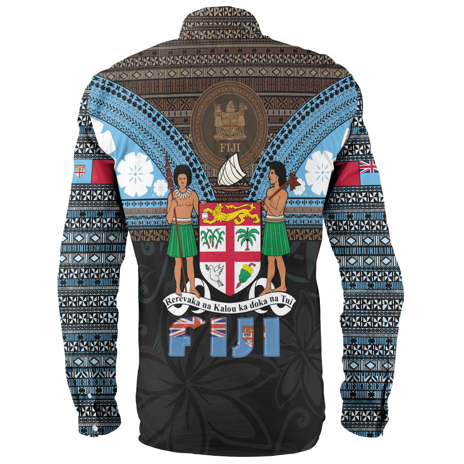Fiji Long Sleeve Shirt Fiji Brown Masi Design With Coat Of Arms Tribal Half Black