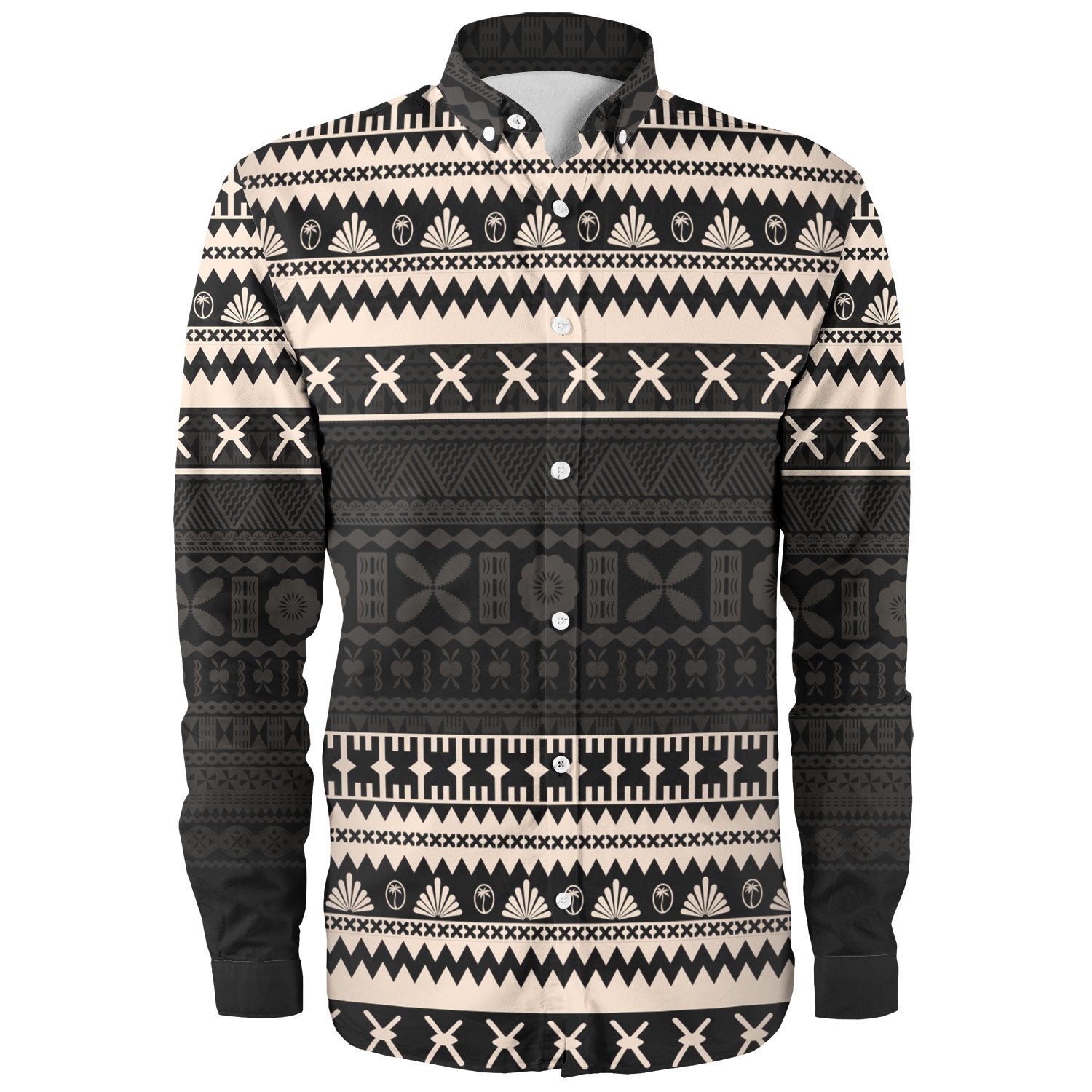 Fiji Long Sleeve Shirt Fijian Masi Pattern Palm Style