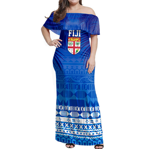 Fiji Off Shoulder Long Dress Happy Fiji Day Celebration Tropical Leaf