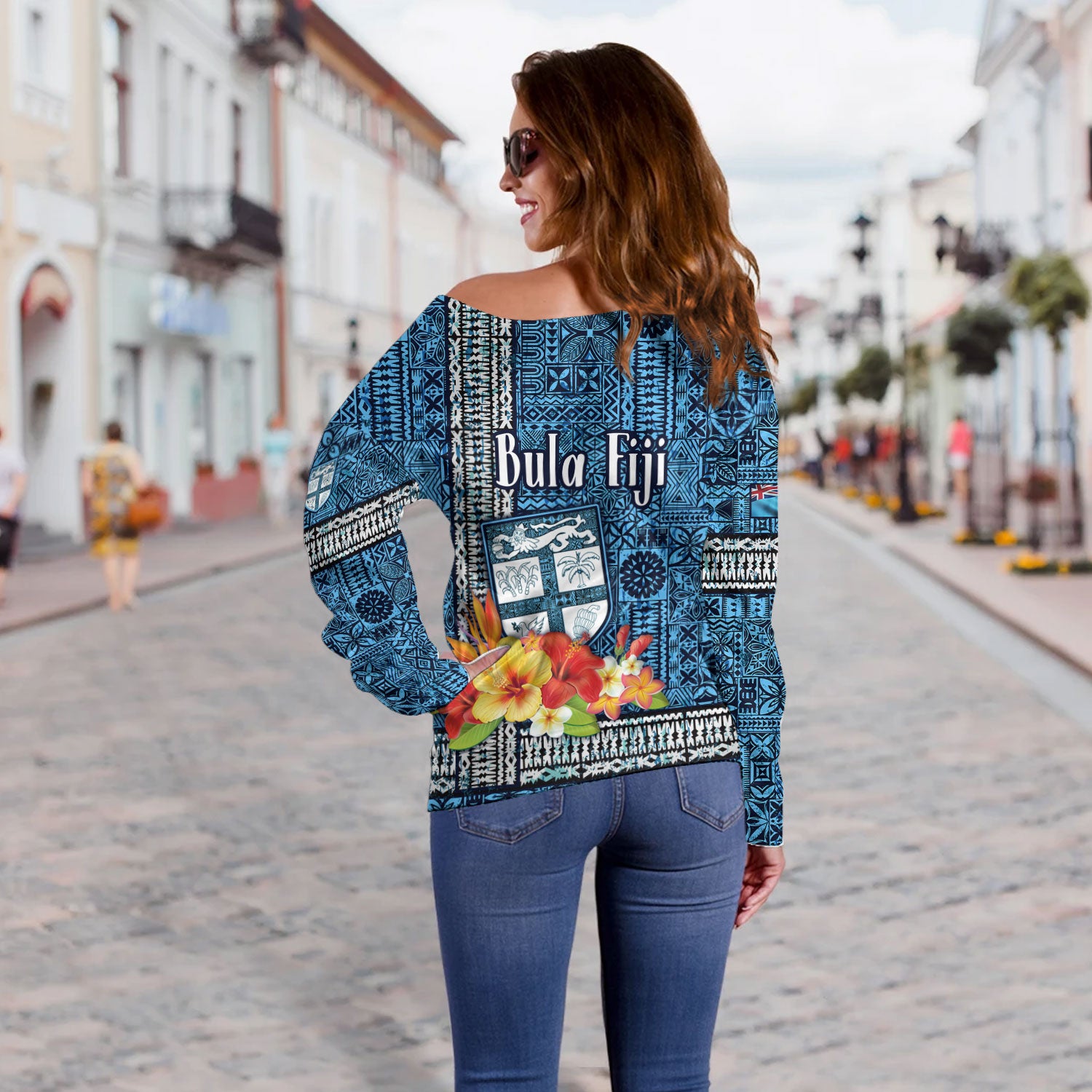 Fiji Off Shoulder Sweatshirt Bula Fiji Masi Tropical Flowers Special Design