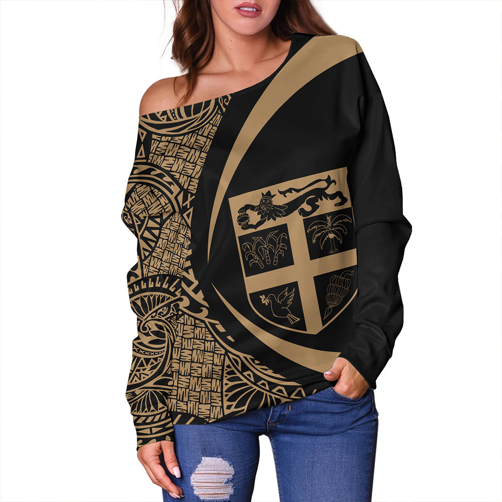 Fiji Off Shoulder Sweatshirt Coat Of Arm Lauhala Gold Circle